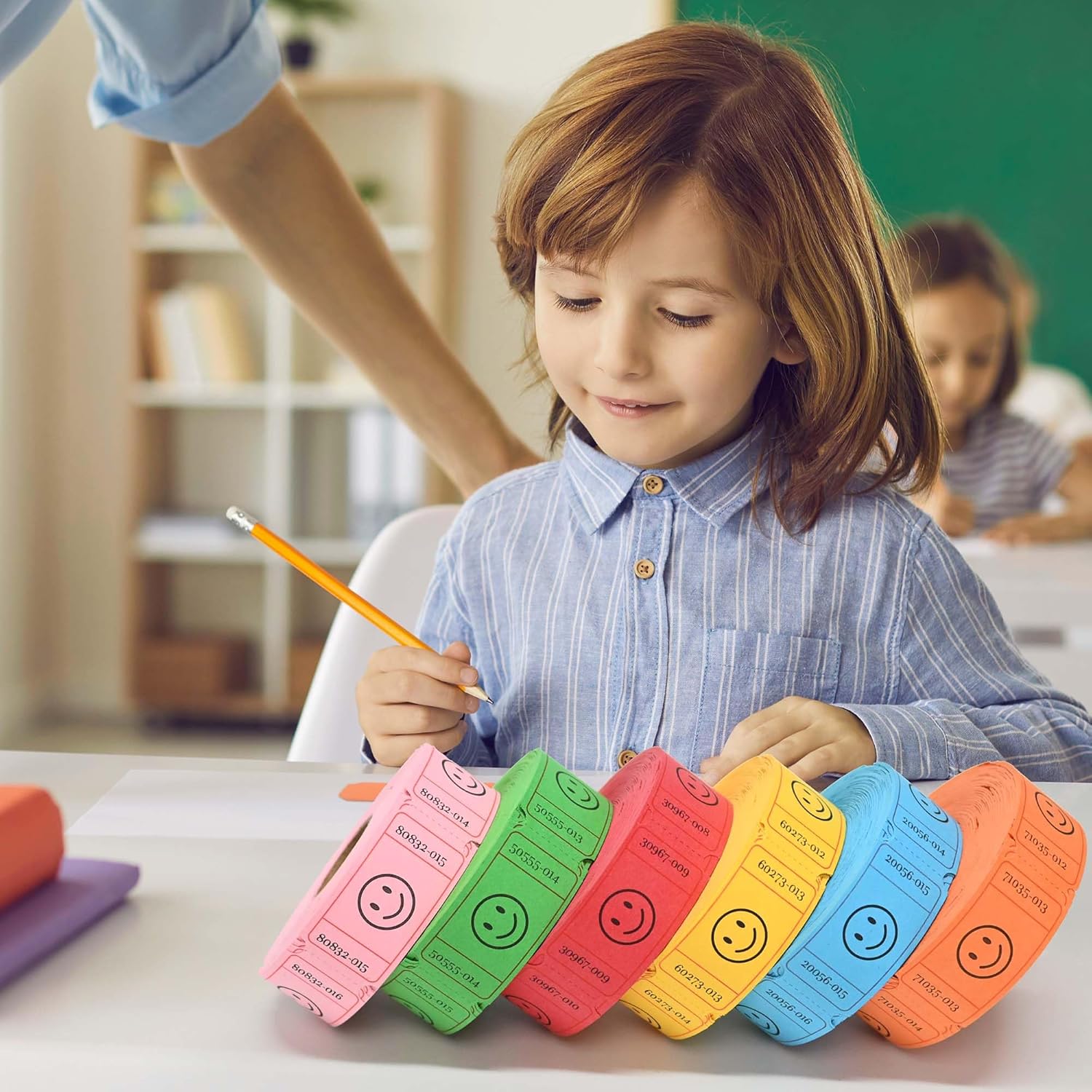 L LIKED 3000 Pack Raffle Tickets, 6 Assorted Colors, Easy-Tear .Numbered Smile Single Rolls Raffle Tickets for Events, Entry, Class Reward, Parties, Prizes