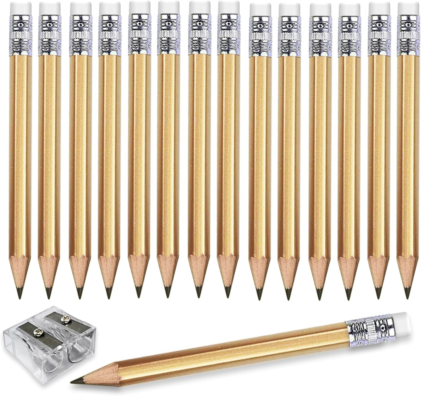 Adhere 25pcs Golf Pencils with eraser Hexagon Wooden Pencils Graphite 2B for Golf Event Scoring,Classroom,Wedding,Company Meetings,Pew, Pocket (Gold)