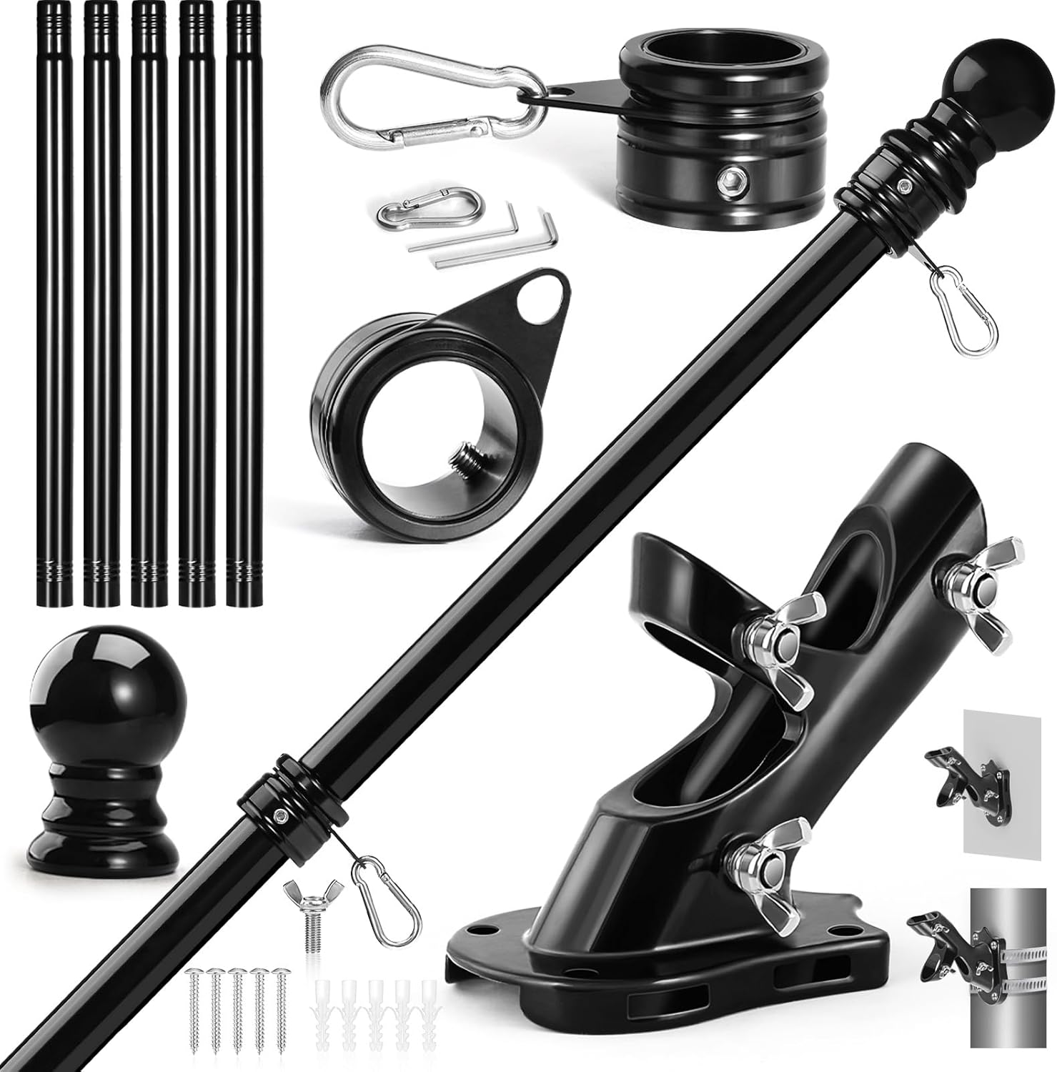 - What You Will Get: 5*section pole, 1* ball ornament, 2 *1" inner diameter flag pole rings ,1*1" inner diameter flag pole holder comes with 4 butterfly screws, 5 standard steel screws, and 5 wall anchors.