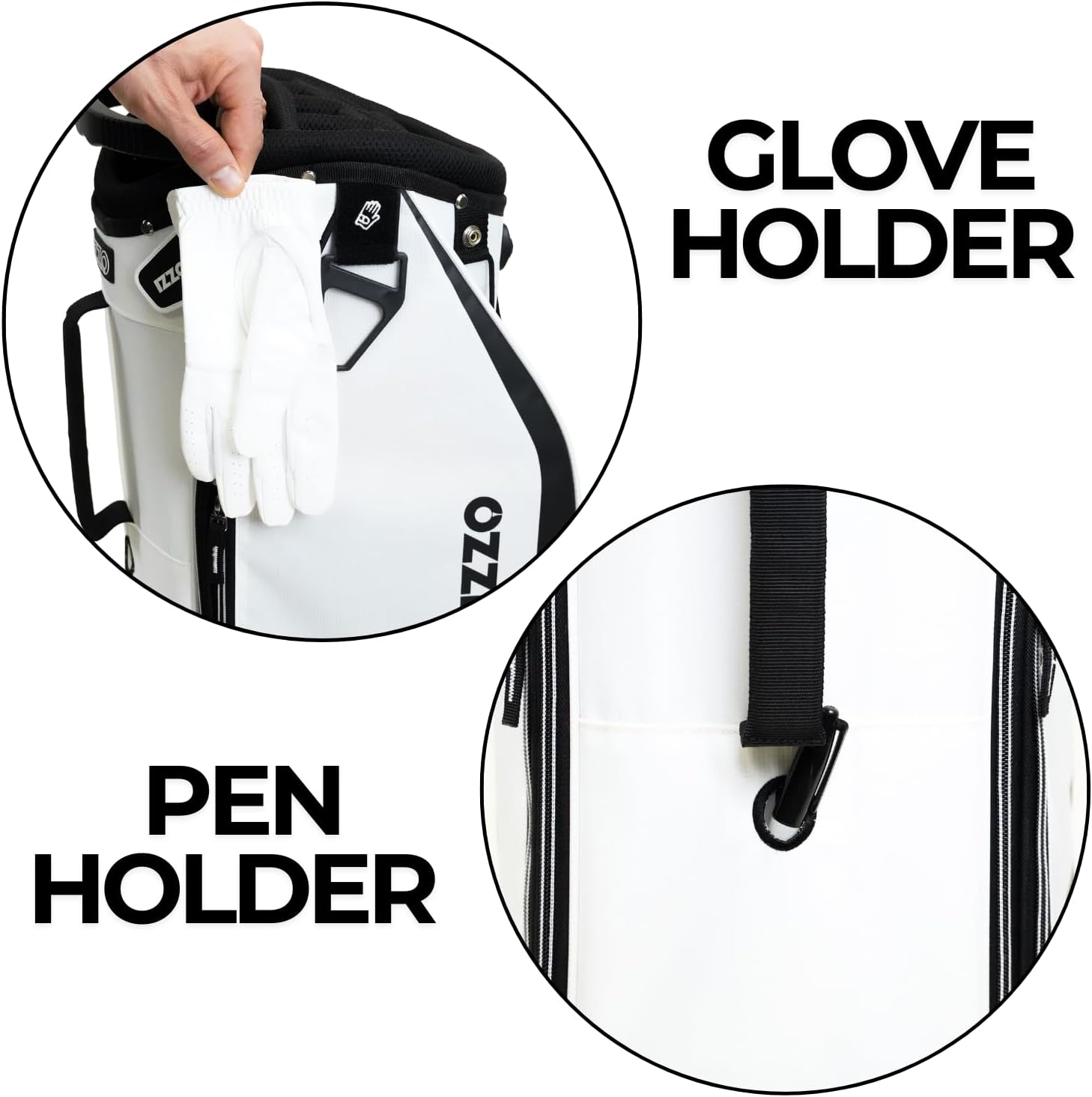 - Premium Features: Our cart golf bag includes 6 total pockets, including a valuables pocket, single carry strap, umbrella holder, glove holder, towel clip, and rain hood