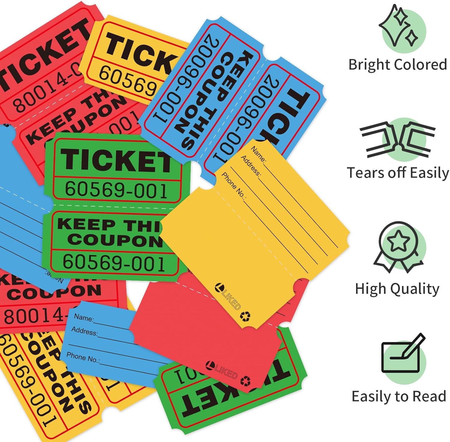 - Versatile Usage: These raffle-style tickets are perfect for various events, drawings, games, and fundraisers, providing an easy way to keep track of participants.