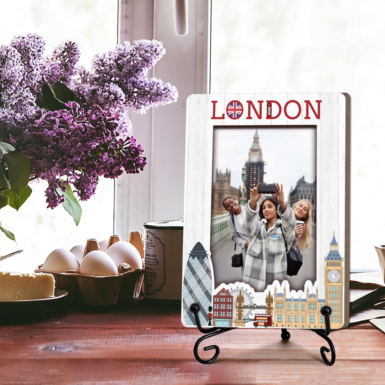 London Travel Picture Frame, 5 x 8 London Themed Wooden Photo Frame with Stand, Vacation Anniversary Honeymoon Gifts For Friend Family Couples, Home Office Desk Decorations-A20