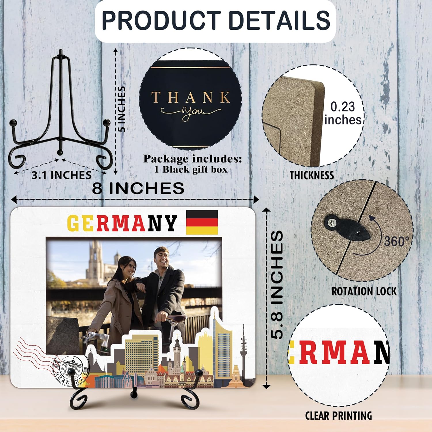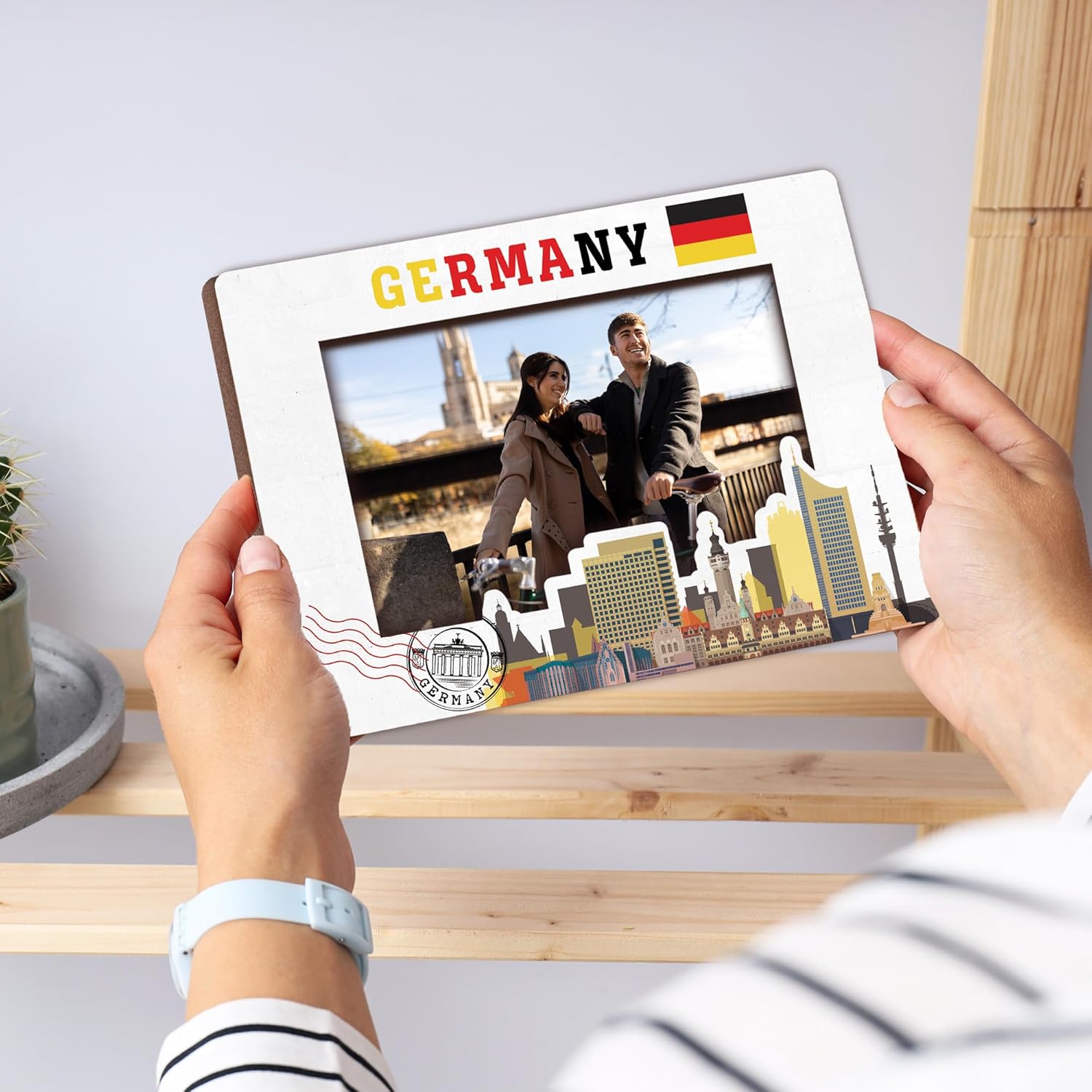 Germany Travel Picture Frame, 5 x 8 Germany Themed Wooden Photo Frame with Stand, Vacation Anniversary Honeymoon Gifts For Friend Family Couples, Home Office Desk Decorations-A04