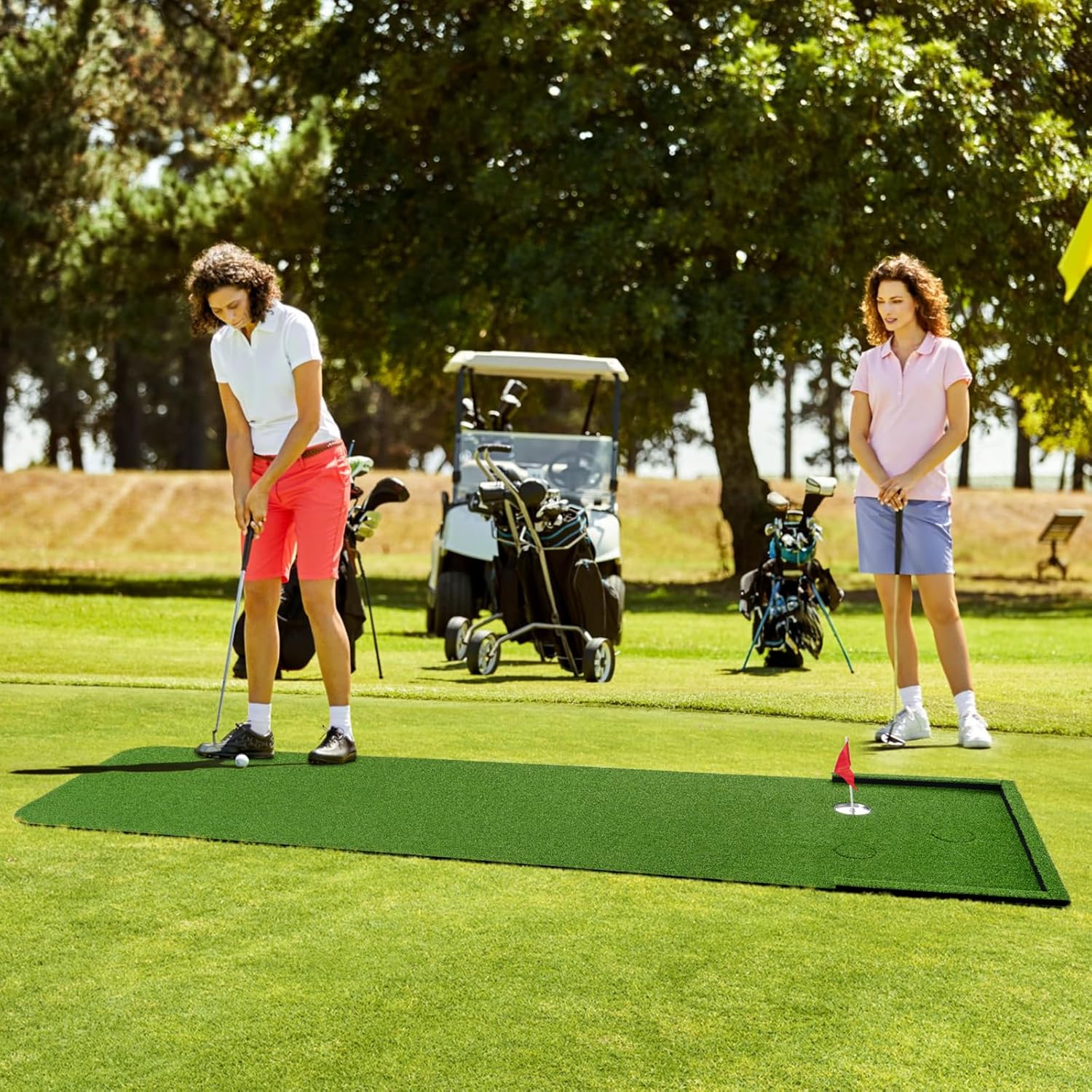 - 【Multifunctional Putting Mat】: The golf putting mat is suitable for both indoor and outdoor settings, such as backyards, patios, and various other places. You can create your own game rules with friends for added enjoyment! A full set of golf necessary components enables you to enjoy golf anywhere without the need to visit an actual golf course.
