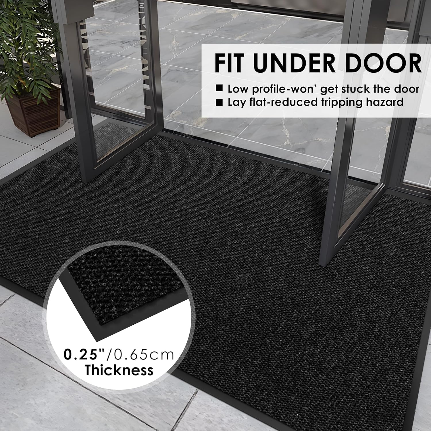 - Durable & Low Profile: Outdoor mats for front door is suitable for places with high traffic like commercial or house entryway. It is highly durable, stain-resistant and fade-resistant, ensuring it maintains its quality even in busy areas. 0.35 inches low profile design won't get stuck doors.