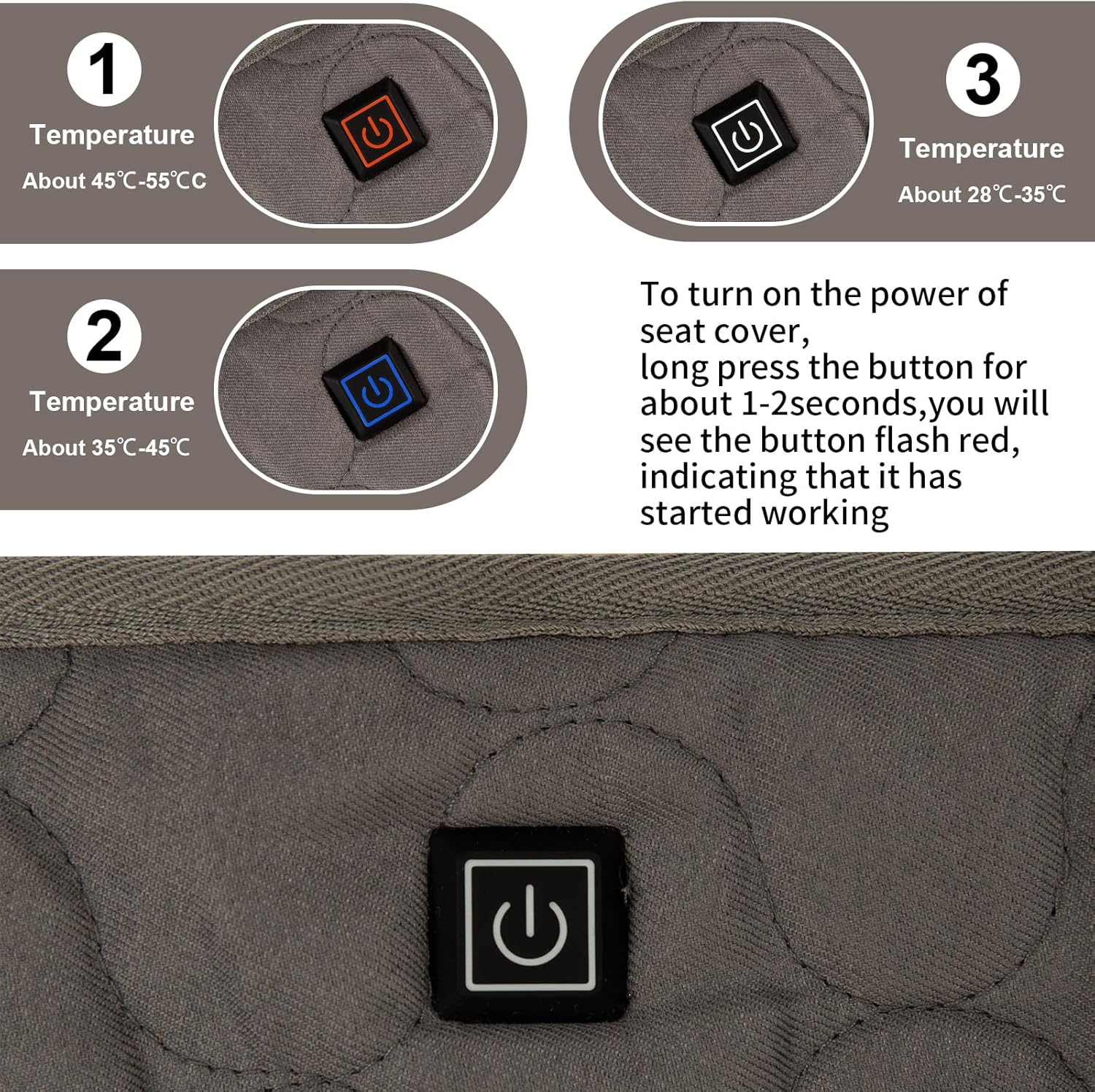 - 【Non-Slip & Warm Design】Golf Cart Seat Towel Blanket offers a no-slip solution with rubber dots on the back, ensuring a secure fit on your golf cart seats.built-in pocket with USB cable, connect with power bank, you can keep warm anytime. Long press the button for two seconds to activate, with three temperature modes--red for the highest temperature, blue for medium temperature, white for low temperature, to meet the warmth needs of different environments.provide all-around comfort and warmth.
