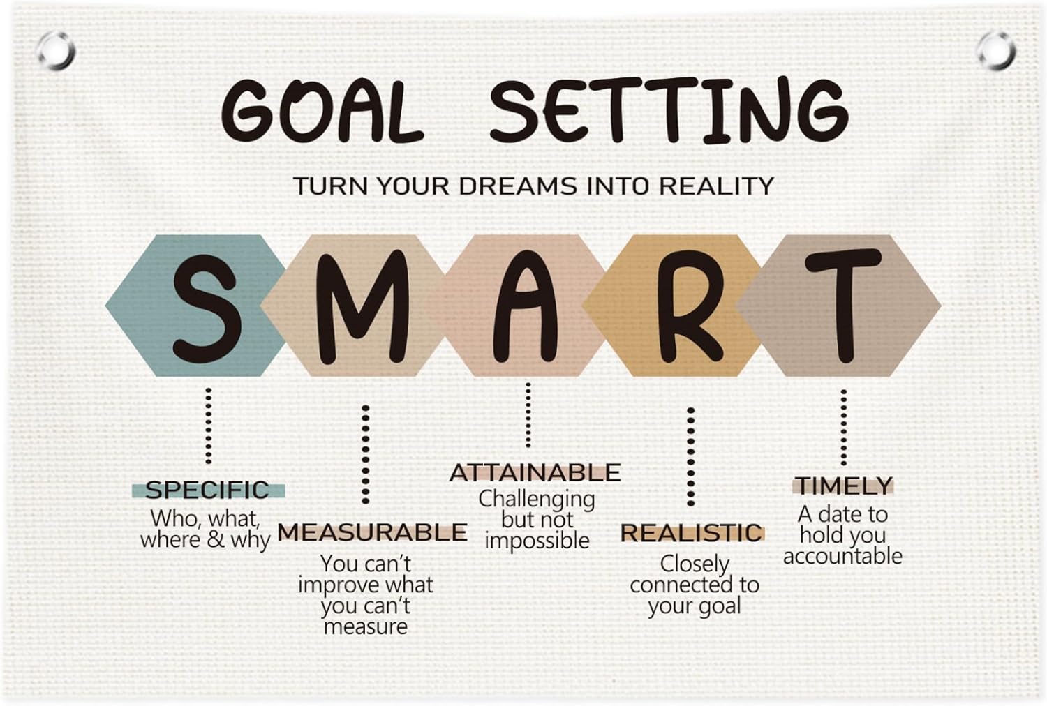 Classroom Wall Decor,Goal Setting Smart Canvas Banner Flags,Positive Affirmations Wall Decor for Homeschool Classroom Preschool Nursery Kids Room,30x20 Inch