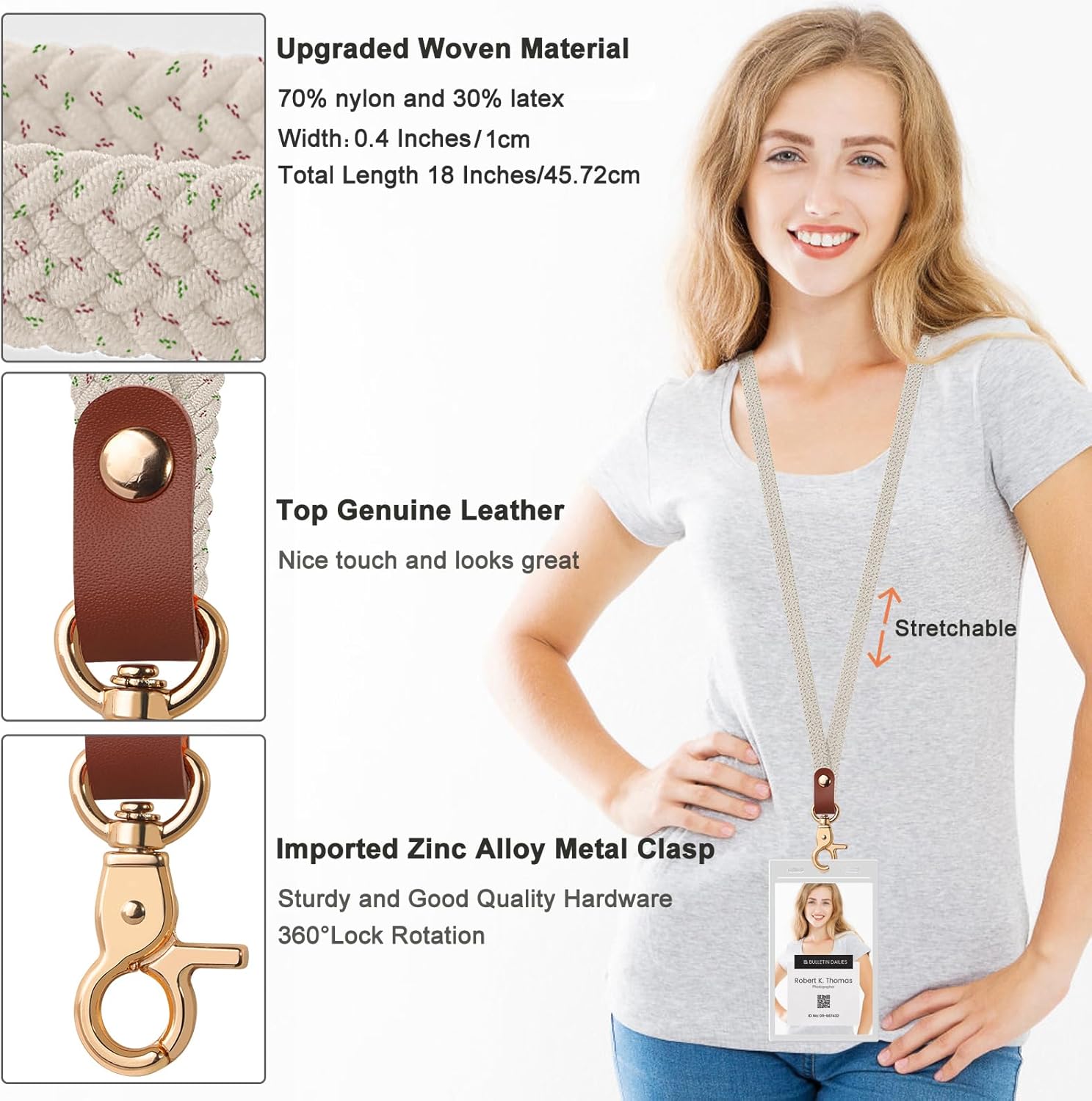 - Convenience & Safety: Stretchy lanyards enable quick access to attached items.If you have a key or ID card on one, you can stretch it to reach the item and it snaps back when you're done.This beats fumbling with non - stretchy, often too short or tight lanyards.The teacher lanyard has a quality metal clasp๏ผit makes the lanyard more solid and long - lasting, ensuring the safety of your essential items