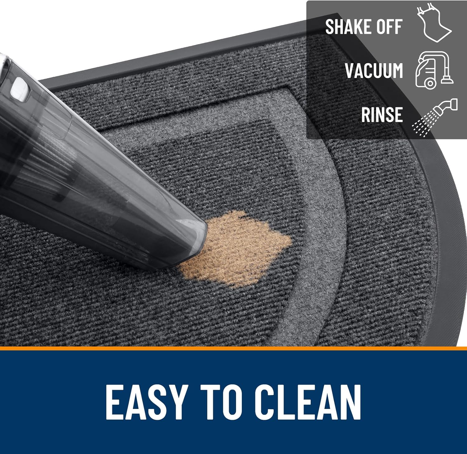 - [EASY TO CLEAN] The OLANLY front door mat is designed for quick and effective cleaning using a vacuum or traditional broom cleaning methods. Additionally, tapping and shaking the back of the doormat helps remove residual debris. For a deeper clean, rinse it with a garden hose and hang the mat in a ventilated place or dry it in a dryer. This versatile cleaning method ensures that your doormat stays clean and tidy, ready to welcome guests.