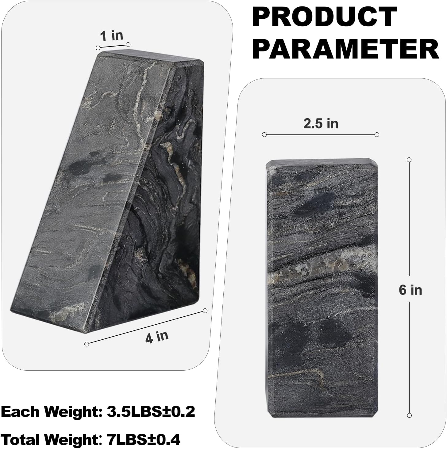 Marble Bookends for Heavy Books, Decorative Book Ends for Shelves, Titanium Black Stone Durable and Heavy-Duty Book Ends for Hardback Books & CDS, Unique Book Stopper & Holder, Set of 2