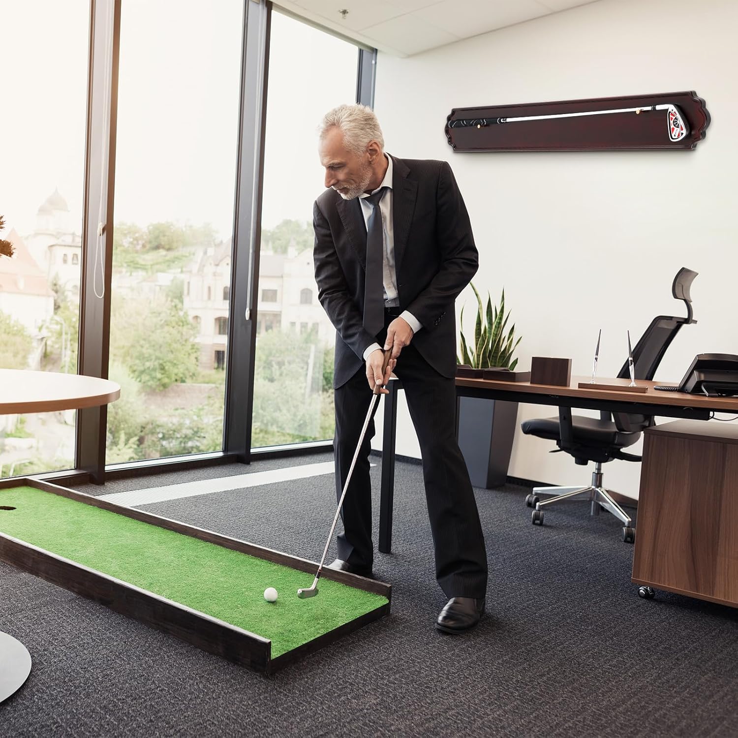 Golf Club Display Case Wall Mount Wooden 42.13 x 5.9 x 0.47 Inch Wall Mount Wooden Storage Display Rack for Antique or Vintage Golf Clubs