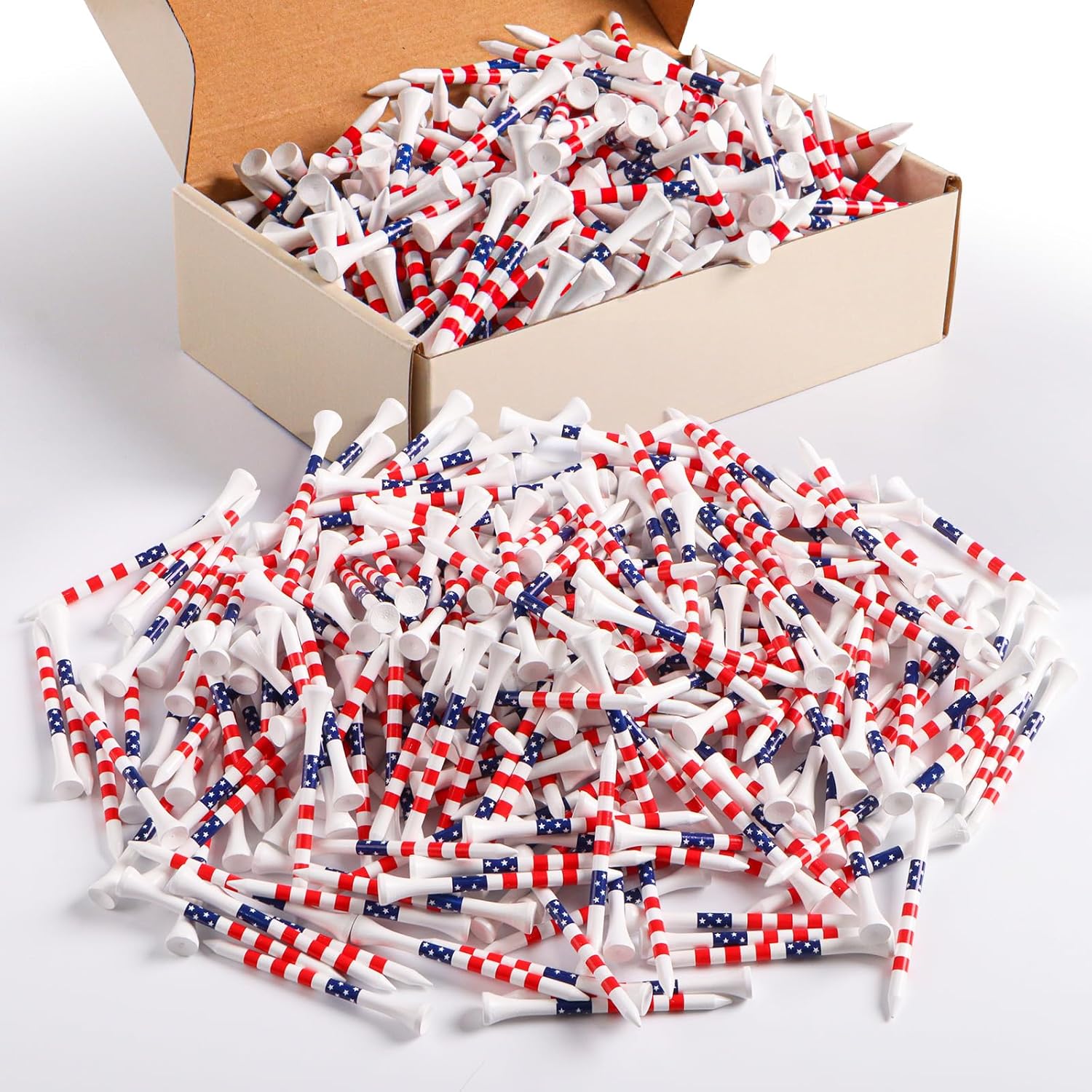 FINGER TEN Bamboo Golf Tees Wood 1 1/2 2 3/4 3 1/4 Inch Wooden Short Long Tee Color Bulk 250/500/1000/2000 Count for Men Women Kids in Red Pink USA Flag