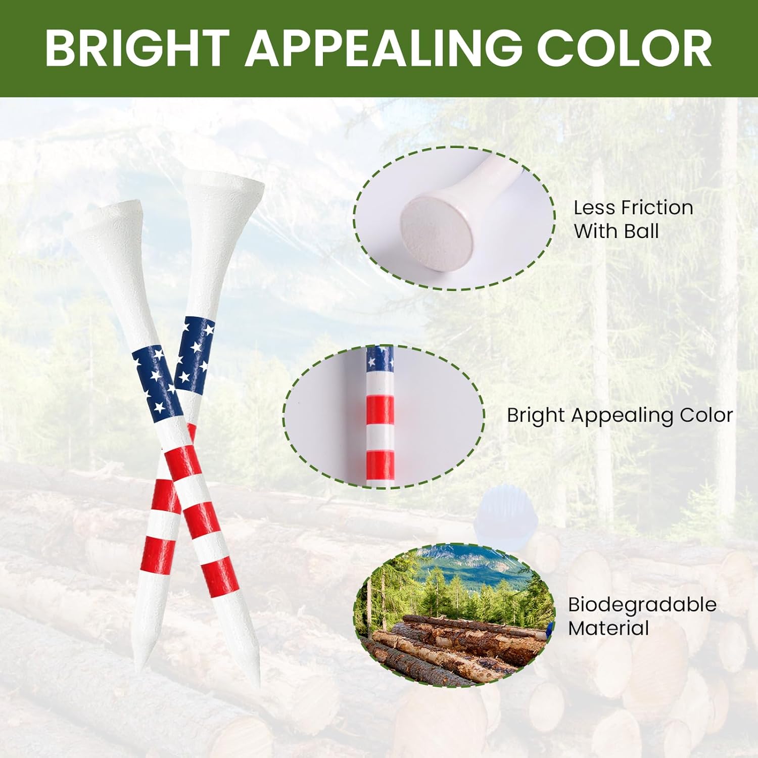 FINGER TEN Bamboo Golf Tees Wood 1 1/2 2 3/4 3 1/4 Inch Wooden Short Long Tee Color Bulk 250/500/1000/2000 Count for Men Women Kids in Red Pink USA Flag
