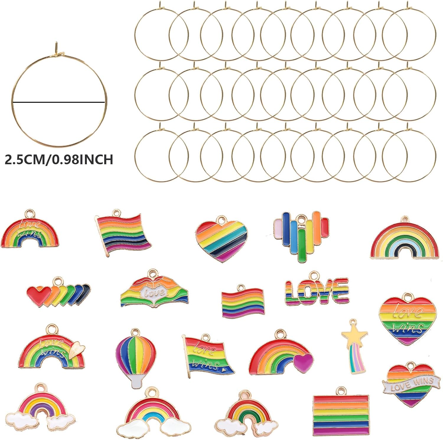 - Rainbow Themed Wine Glass Markers Charms: Our wine glass charms come with a variety of cute charms and colors, all designed to match classic rainbow's elements. These include all kinds of rainbow style