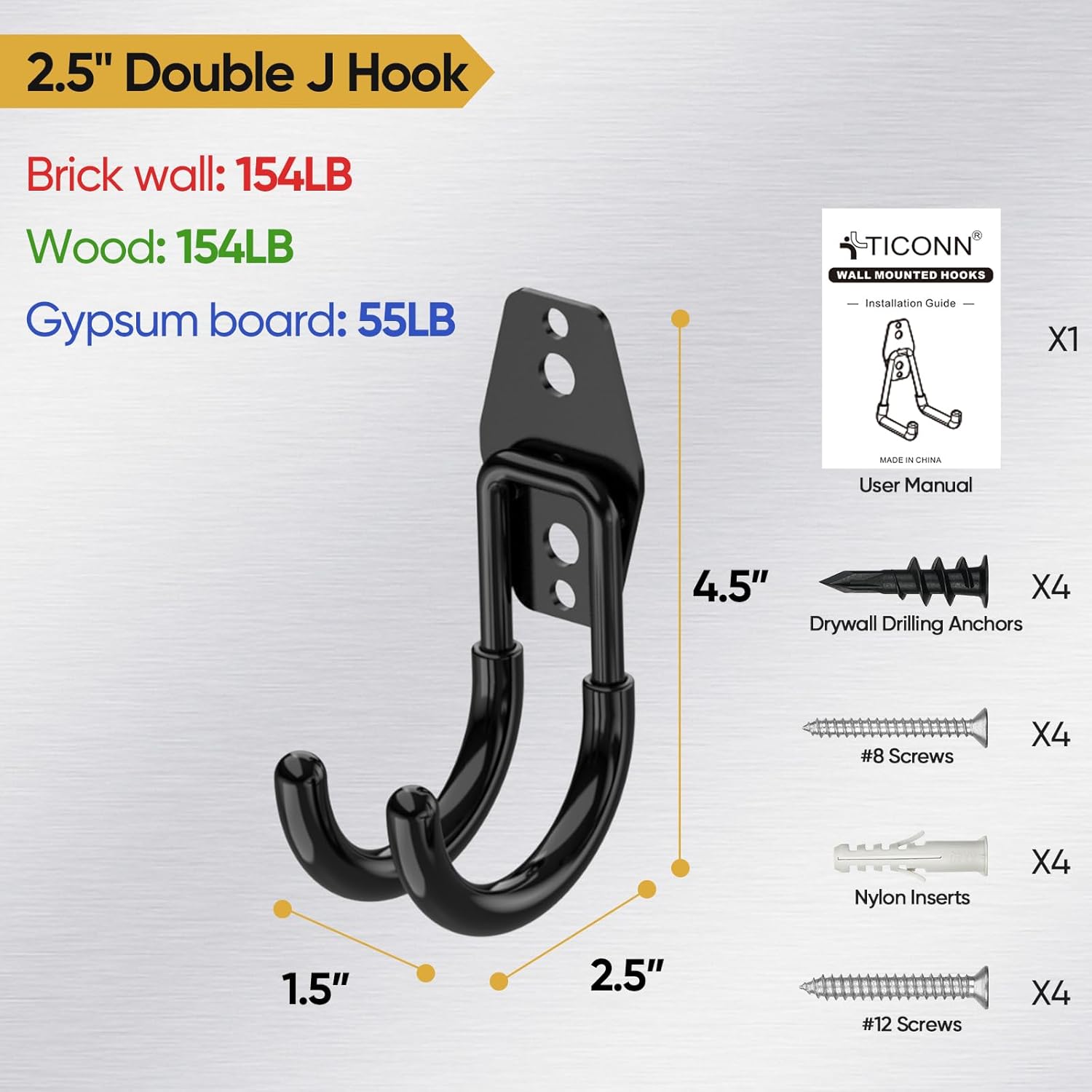 - [HEAVY DUTY MATERIAL] The garage hooks are made of sturdy iron and thickened steel plate with a rust-resistant and waterproof coating. The PVC sheath design provides protection against scratches and slipping. These hooks can support weights up to 154 lbs, ideal for hanging heavy items in your garage