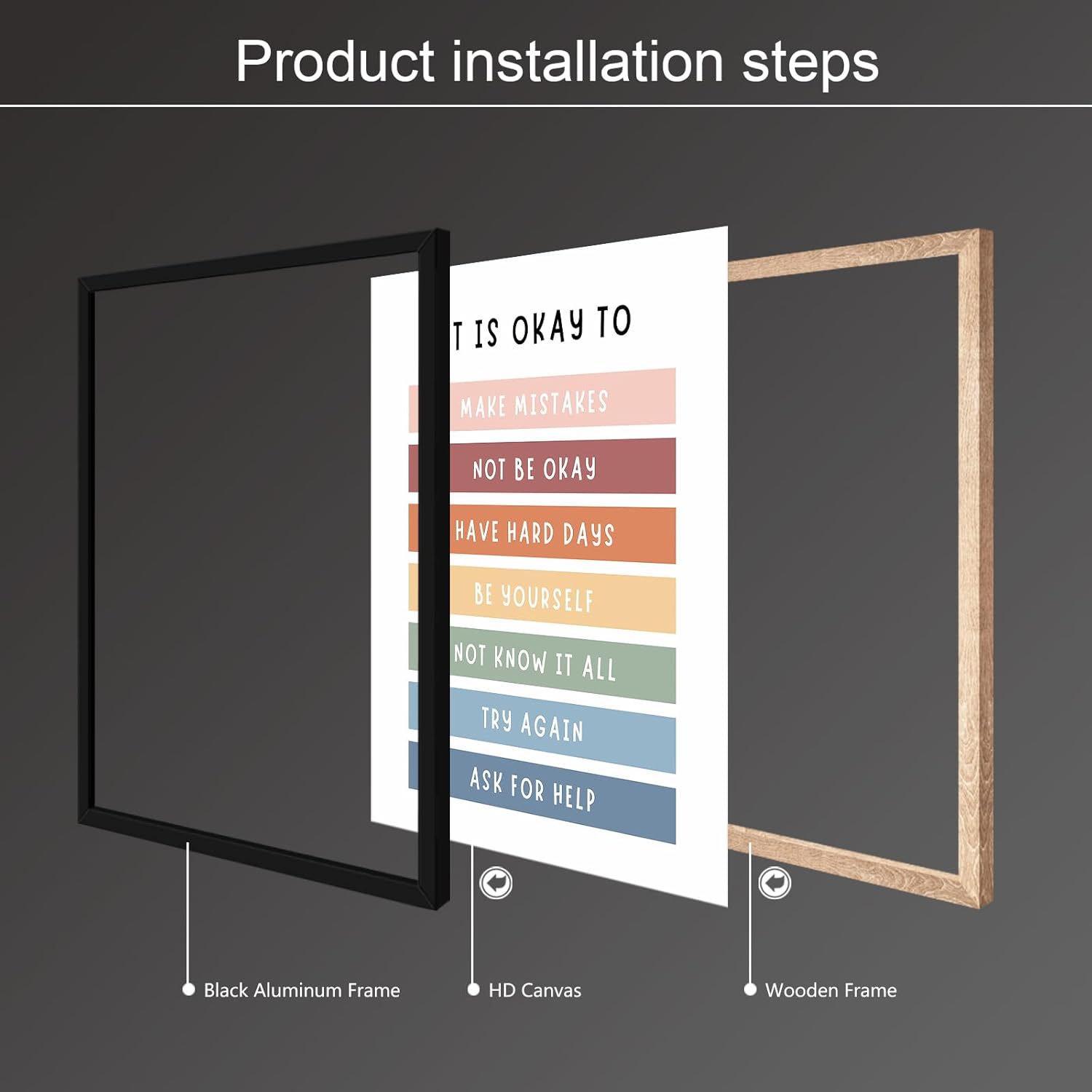 - 【Growth Mindset Canvas Wall Art Size】 Our growth mindset posters sizes 12x16inch(30cm x 40cm),The positive quotes wall decor makes your room full of art and beauty.This decorative painting has a black metal frame. Just a simple operation can display him in your favorite living space. Impress you, your family, and even your guests.