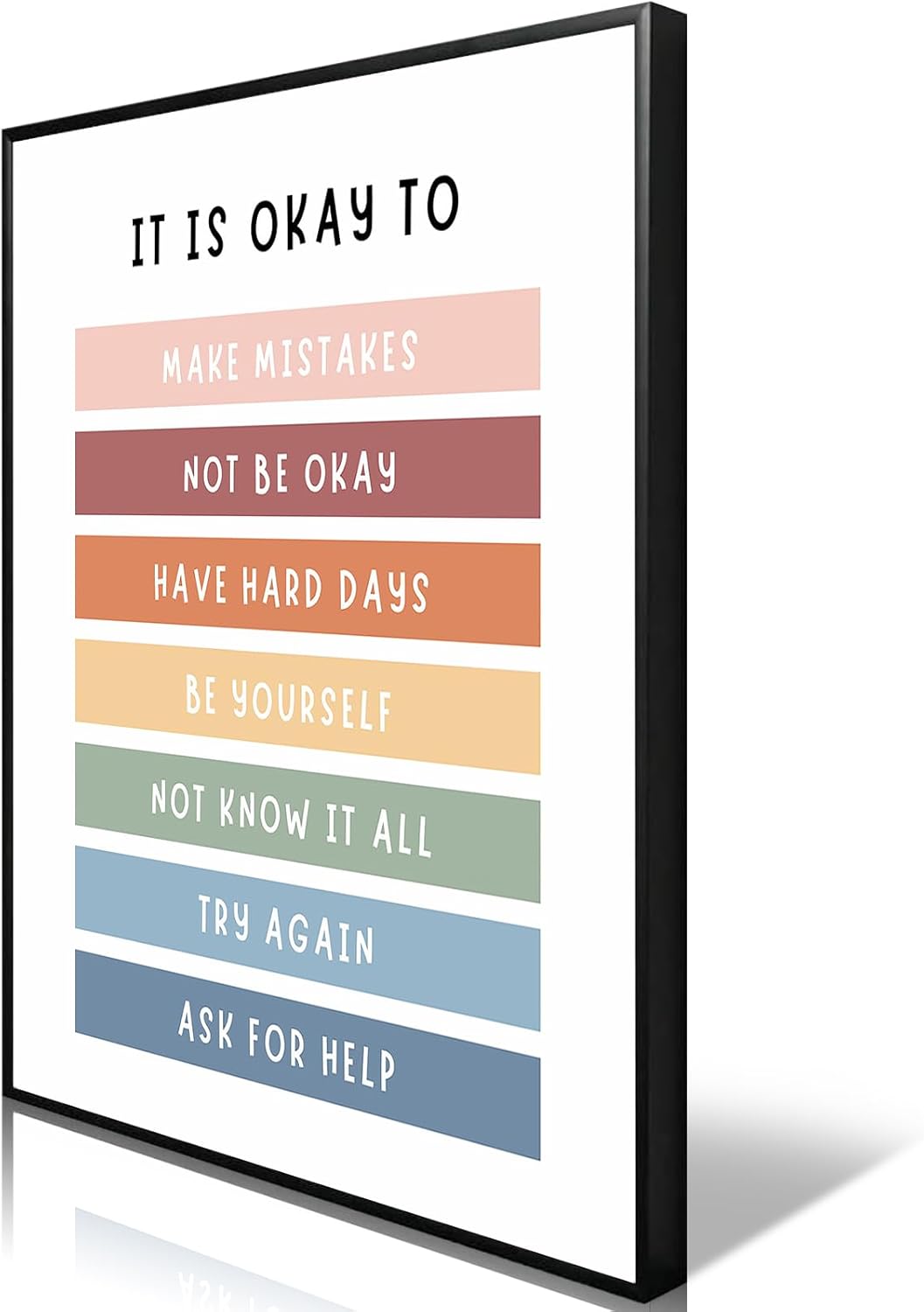 uoyien Growth Mindset Mental Health Posters Boho Classroom Playroom Therapy Wall Decor Affirmations Quotes Canvas Wall Art Kids Educational Prints For Calming Corner Decoration 12x16in Metal Framed