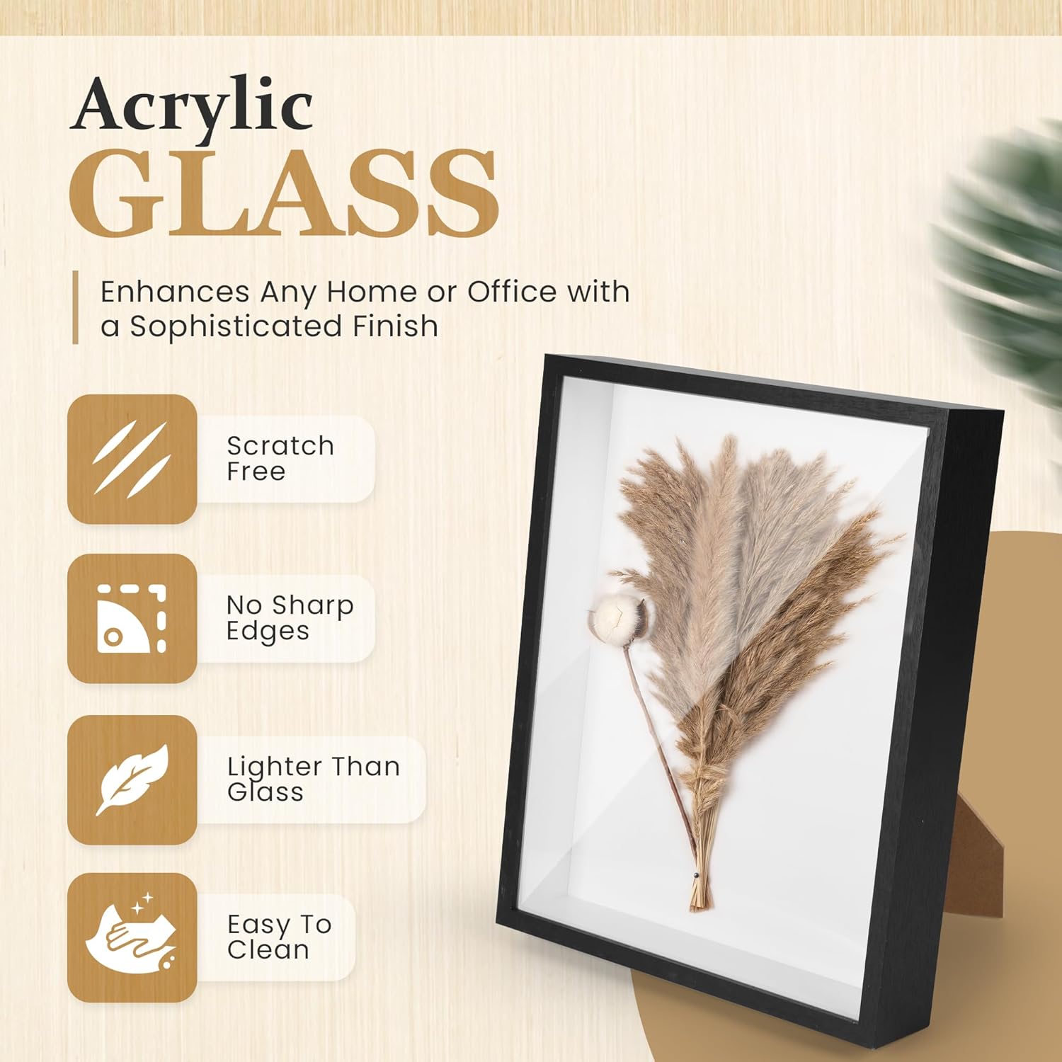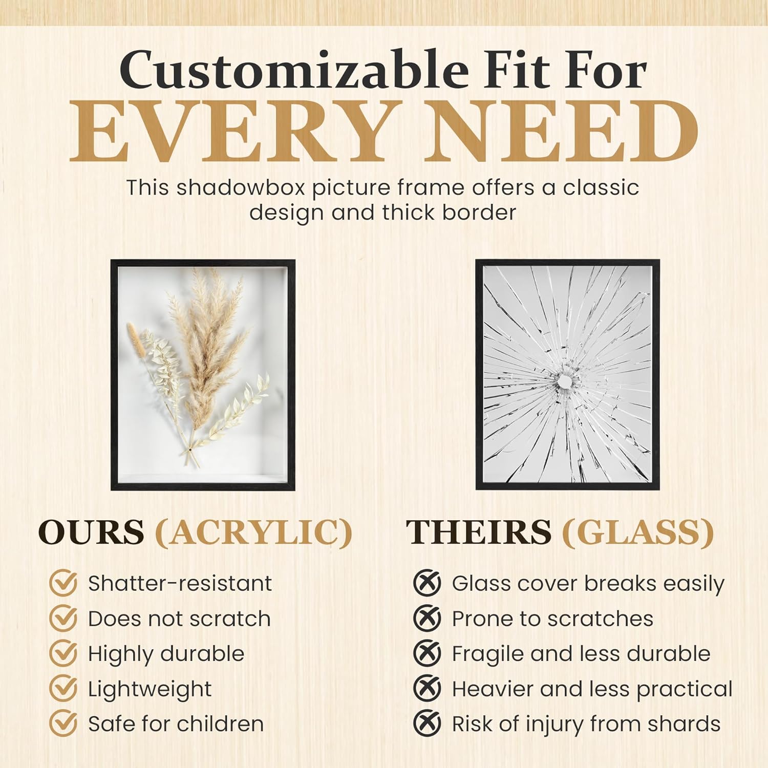 - STURDY FRAMES – Our picture box is constructed for durability and features high-quality acrylic. Our large shadow box can hold photos, postcards, concert tickets, wine corks, pins, ribbons, or any memorabilia you desire.