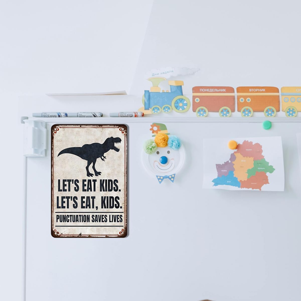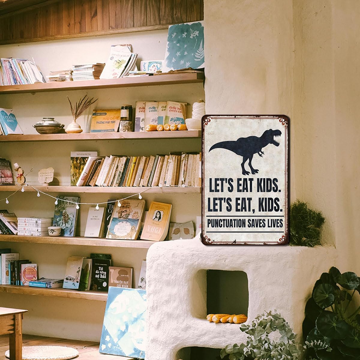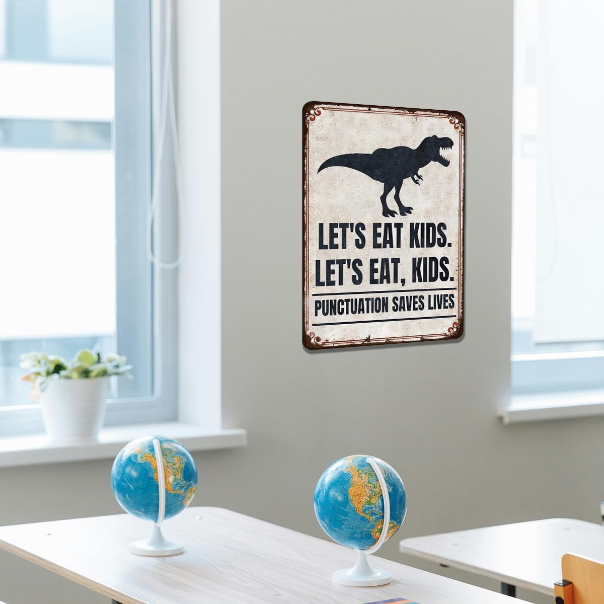 - Humorous Grammar Design: Featuring the witty phrase "Let's Eat, Kids" and "Punctuation Saves Lives," this metal sign adds humor and a touch of education to any English classroom or teacher's workspace. It's an engaging way to emphasize the importance of punctuation