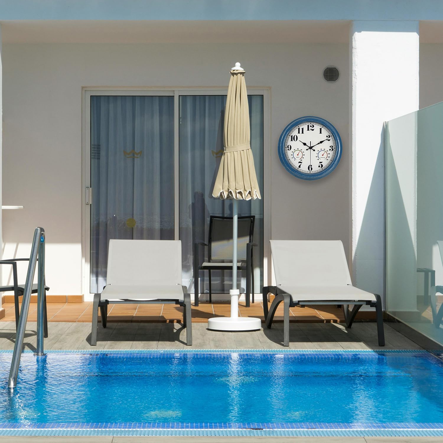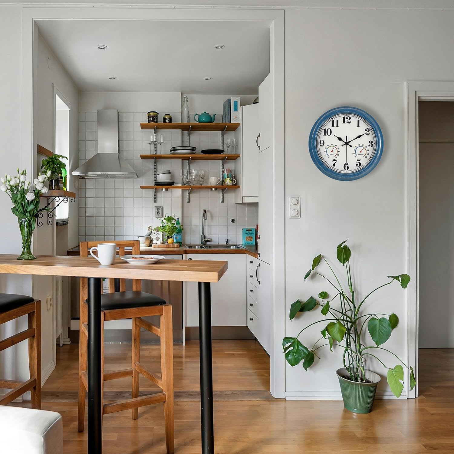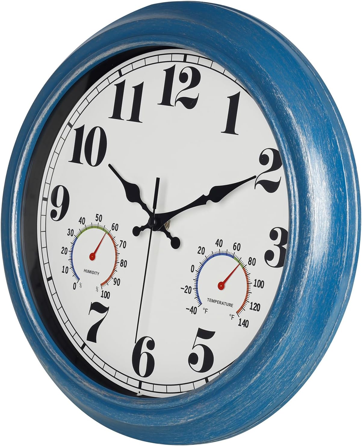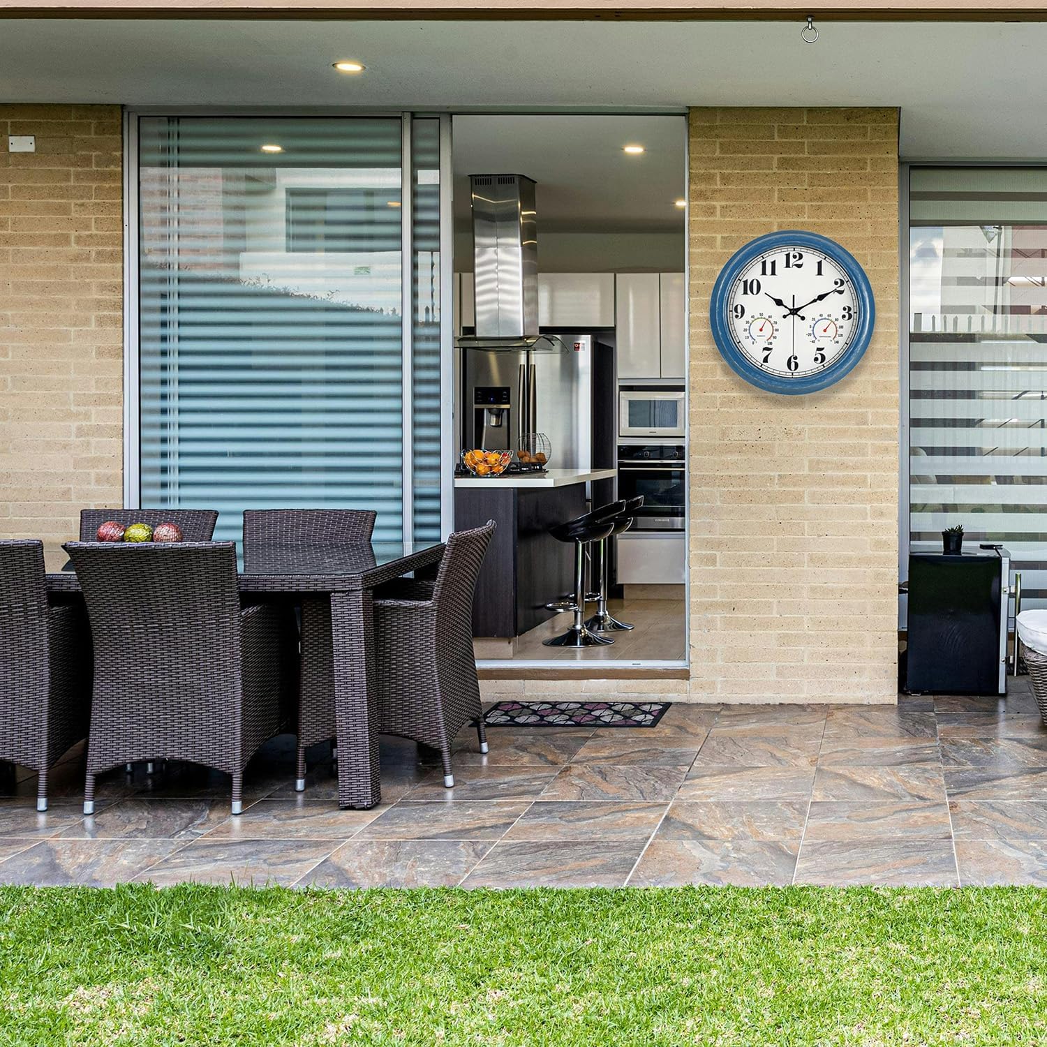 JENLYSTIME 13 Inch Outdoor Clock, Waterproof and Silent, with Thermometer and Hygrometer, Large Numbers for Easy Reading, Perfect for Home,Office,Bedroom,Kitchen,Porch,Garden,Pool(Blue)