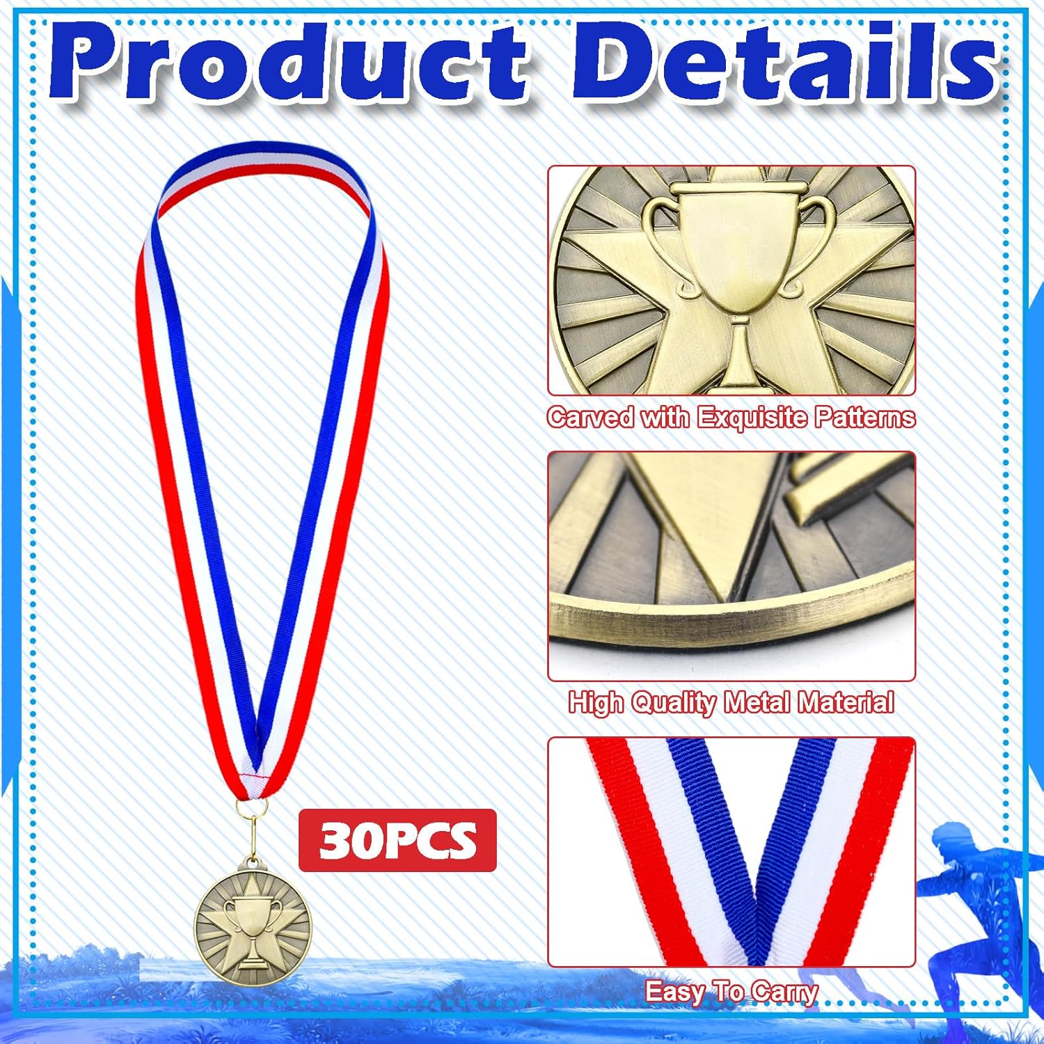 - Ample Quantity: this comprehensive set comes with 30 pcs star cup medals, each attached with a ribbon in white, red, and blue colors; The ample quantity and color assortment cater to a diverse range of customer needs, ensuring a memorable gradation for the winners and participants alike