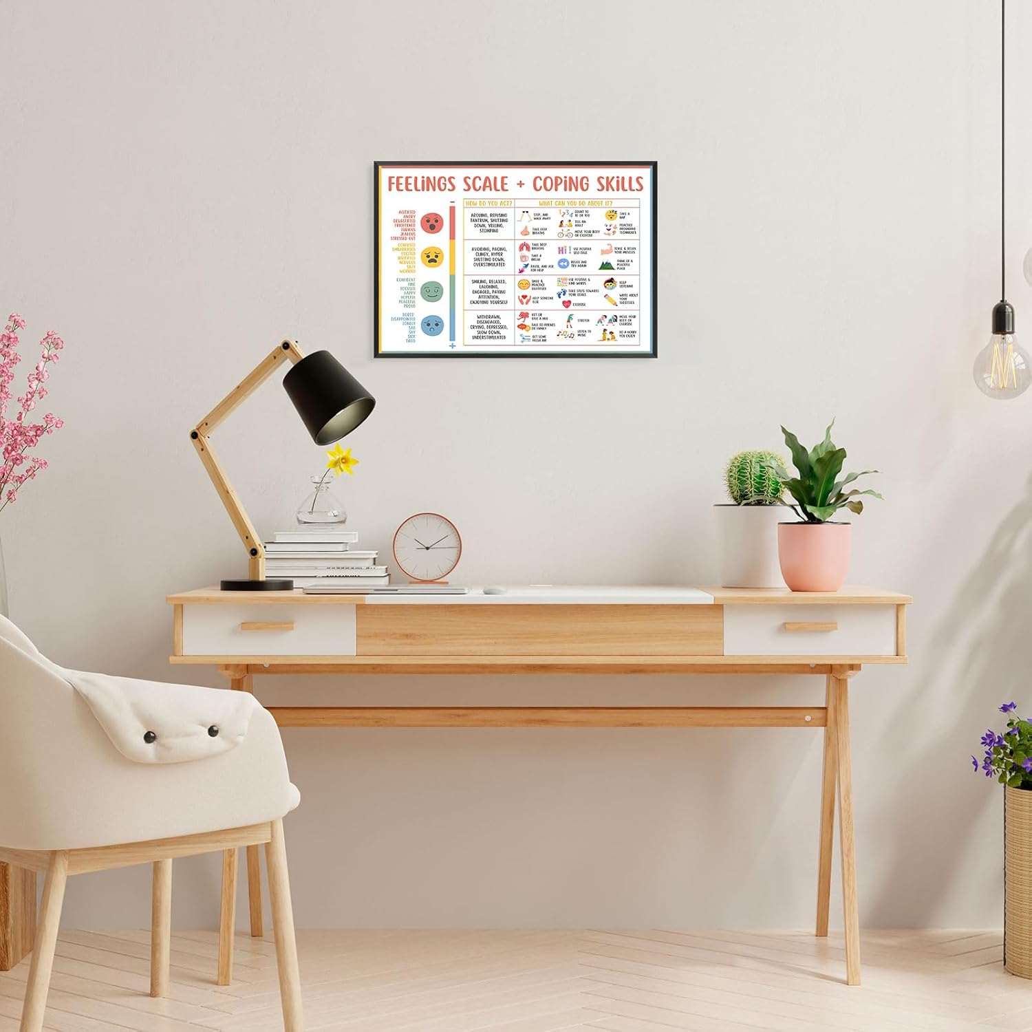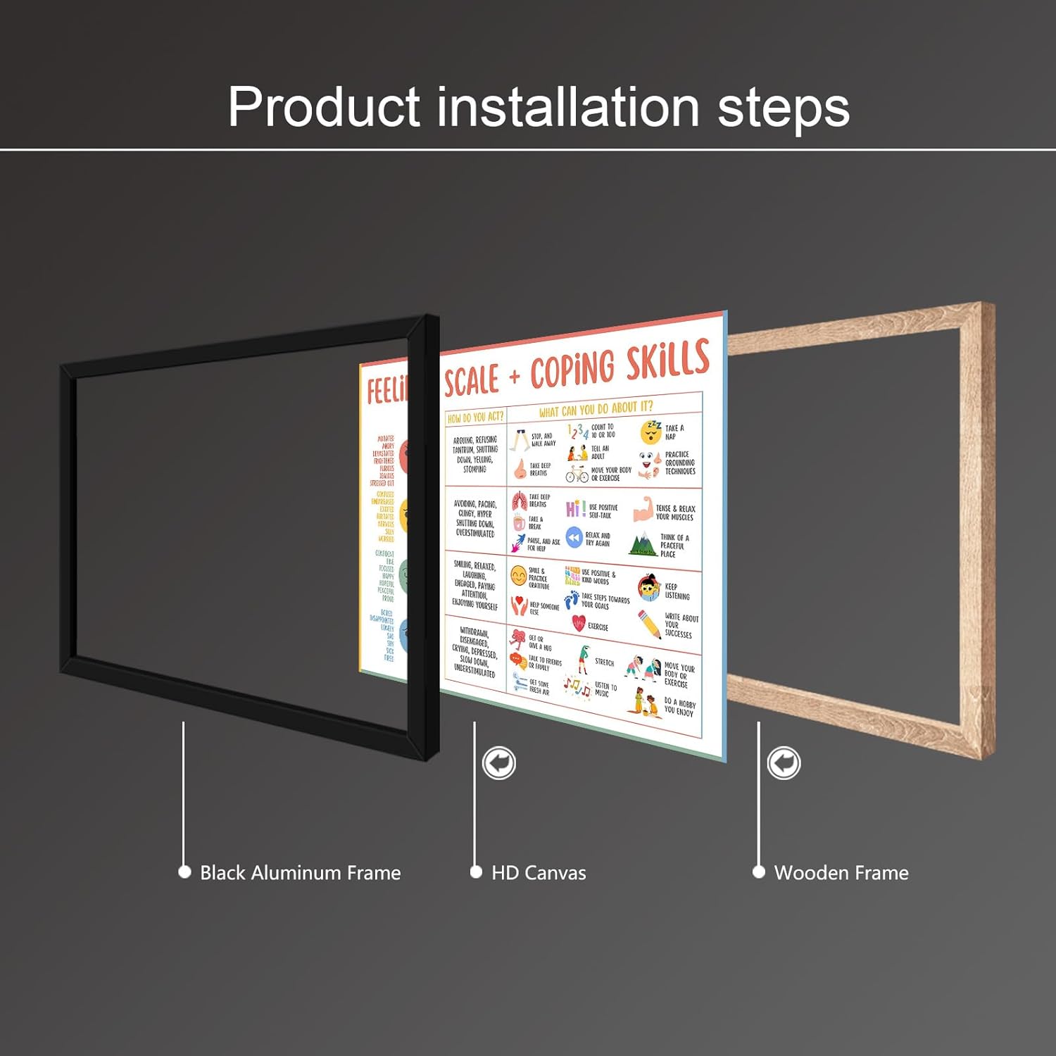- 【Feelings Chart For Kids Posters Size】 16x24inch(40cm x 60cm), This kids learning posters decorative painting has a black metal frame,There's a wooden frame embedded in it. Just a simple operation can display him in your favorite living space. Impress children, your family, and even your guests.