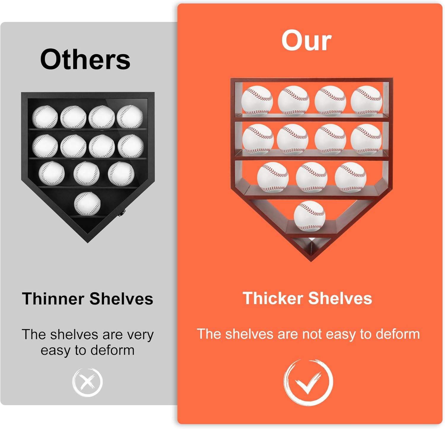 - Materials:Constructed from high quality MDF wood with an anti-fading matte finish, our baseball display holder offers durability and protection.