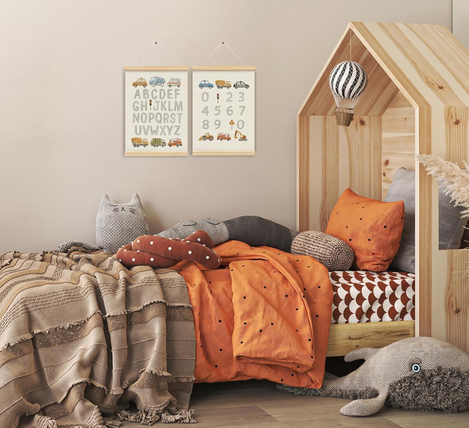 KDHTY ABC Alphabet Chart Wall Art,Toddler Learning Posters Hanger Frame,Car Wall Art Decor,Toddler Boy Room Decor for Toddler Playroom Nursery,12x16 Inch,Set of 2