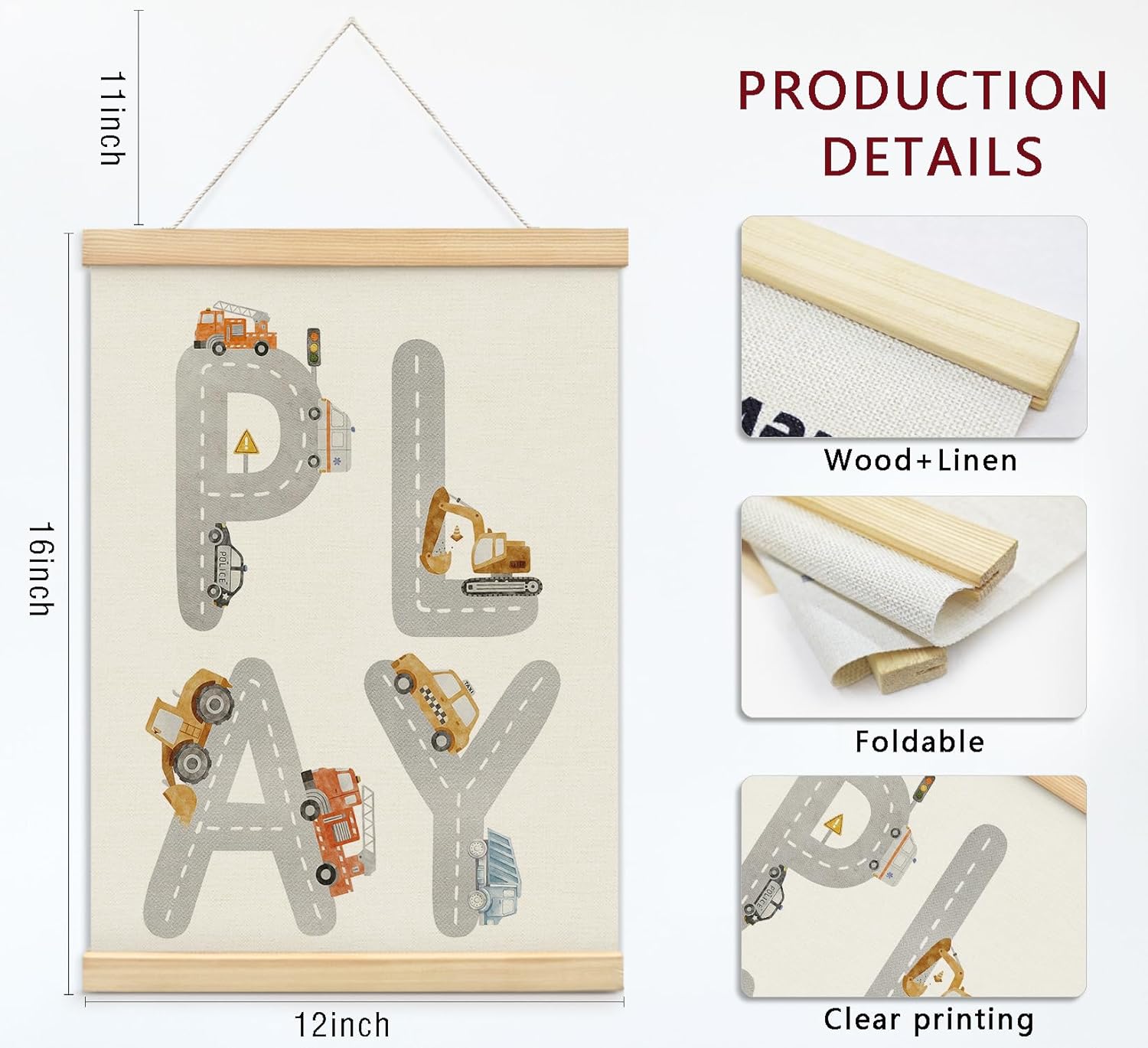 KDHTY Toddler Boy Room Decor,Cars Decor for Boys Room,Playroom Wall Decor Canvas Hanging Banner,Nursery Toddler Room Decor Kids Playroom Art,Reading Corner Decor,12 x 16 Inch,Set of 2