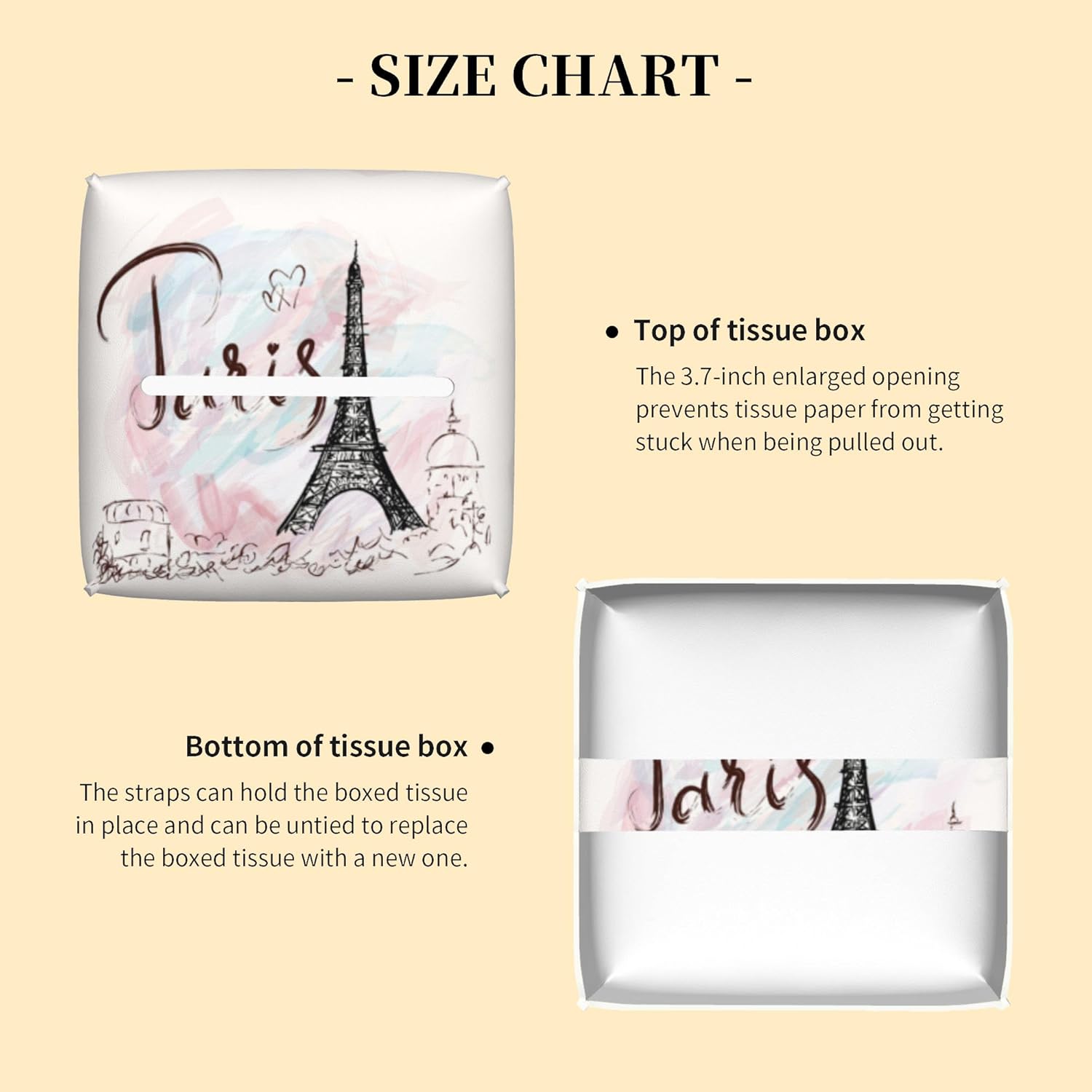 Tissue Box Cover Square,Paris Eiffel Tower Tissue Box Holder Waterproof Leather Facial Paper Case Modern Home Decoration for Bedroom Dresser Night Stand Office Desk