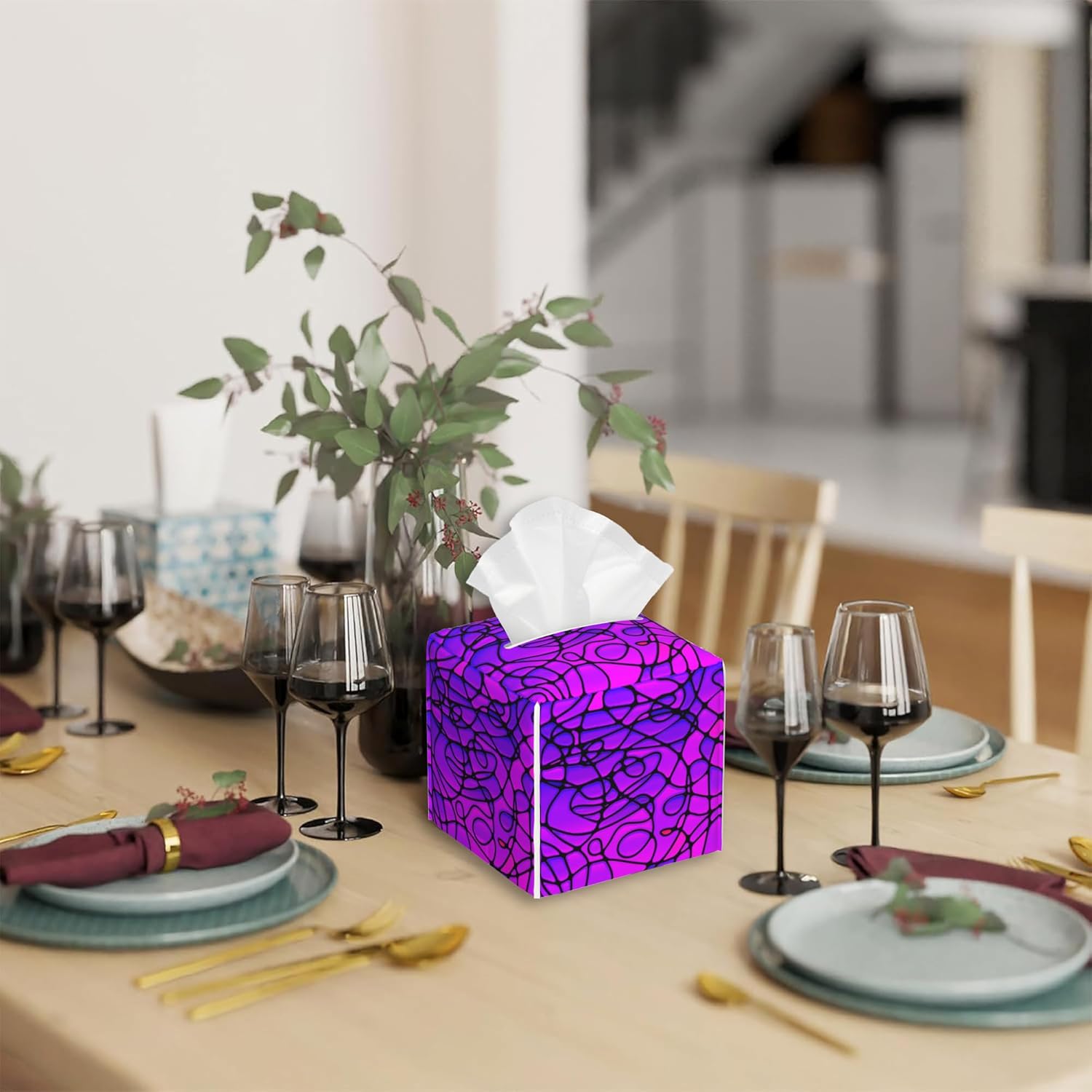 Tissue Box Cover Square,Abstract Purple Stained Glass Tissue Box Holder Waterproof Leather Facial Paper Case Modern Home Decoration for Bedroom Dresser Night Stand Office Desk