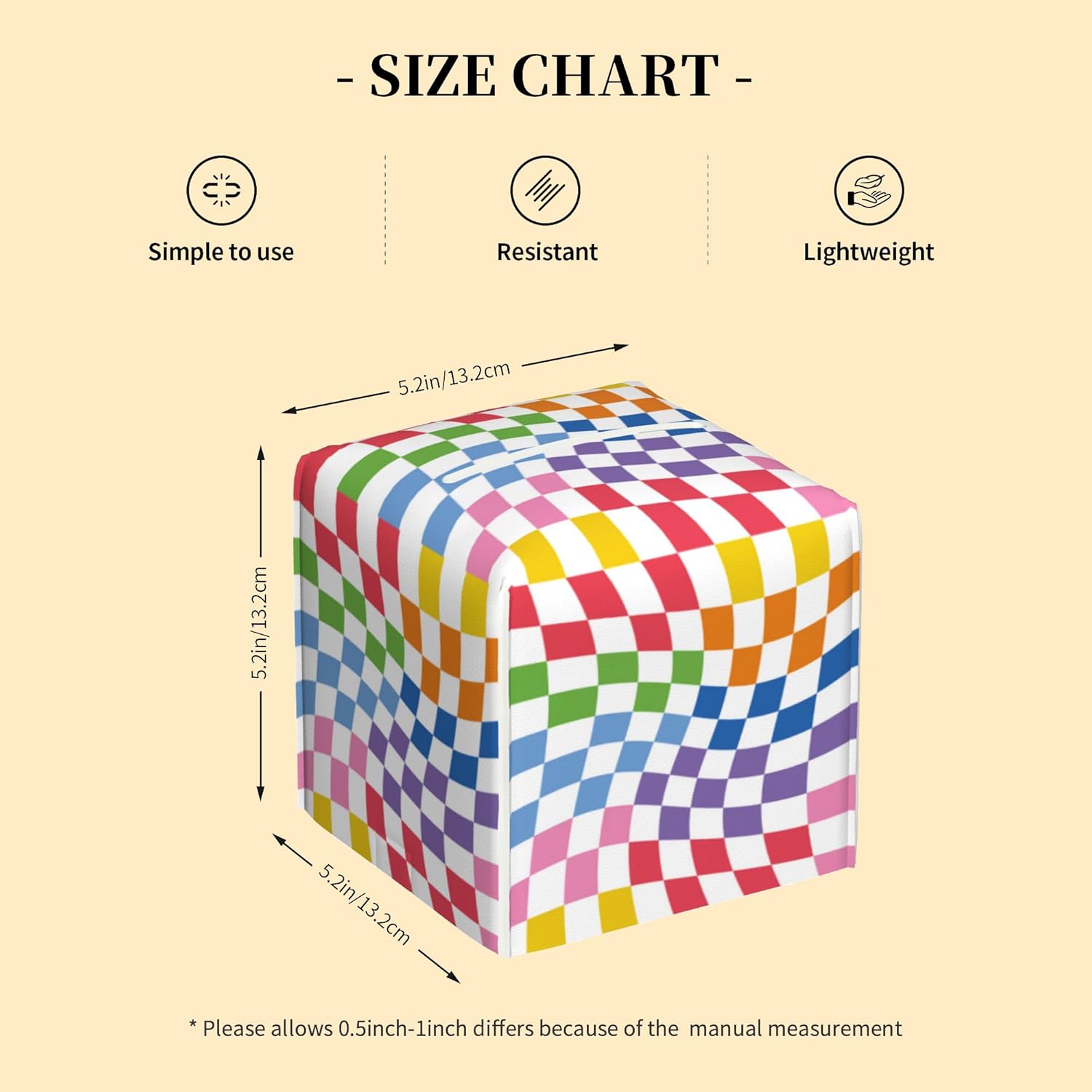 - Universal Size:Tissue box cover measures 5.2"L x 5.2"W x 5.2"H,Accommodates most standard square paper towels on the market