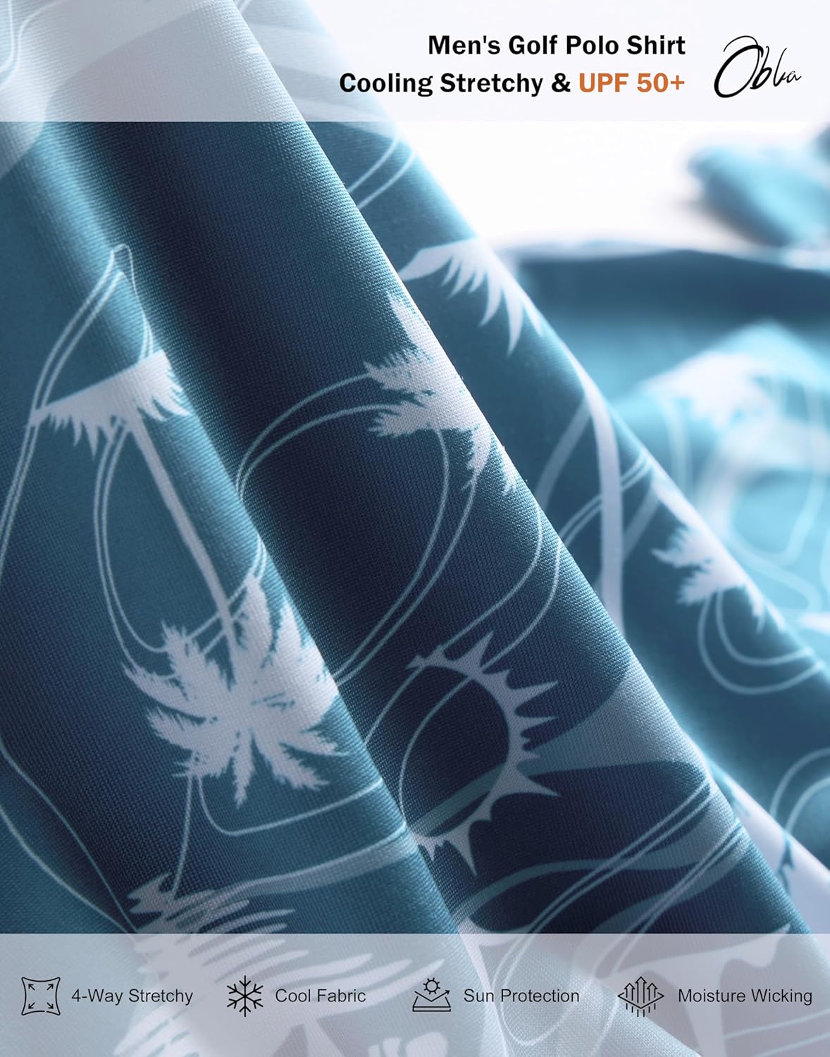 Obla Mens Golf Polo Shirts Short Sleeve Dry Fit Performance Moisture Wicking Casual Print Collared Golf Shirts for Men