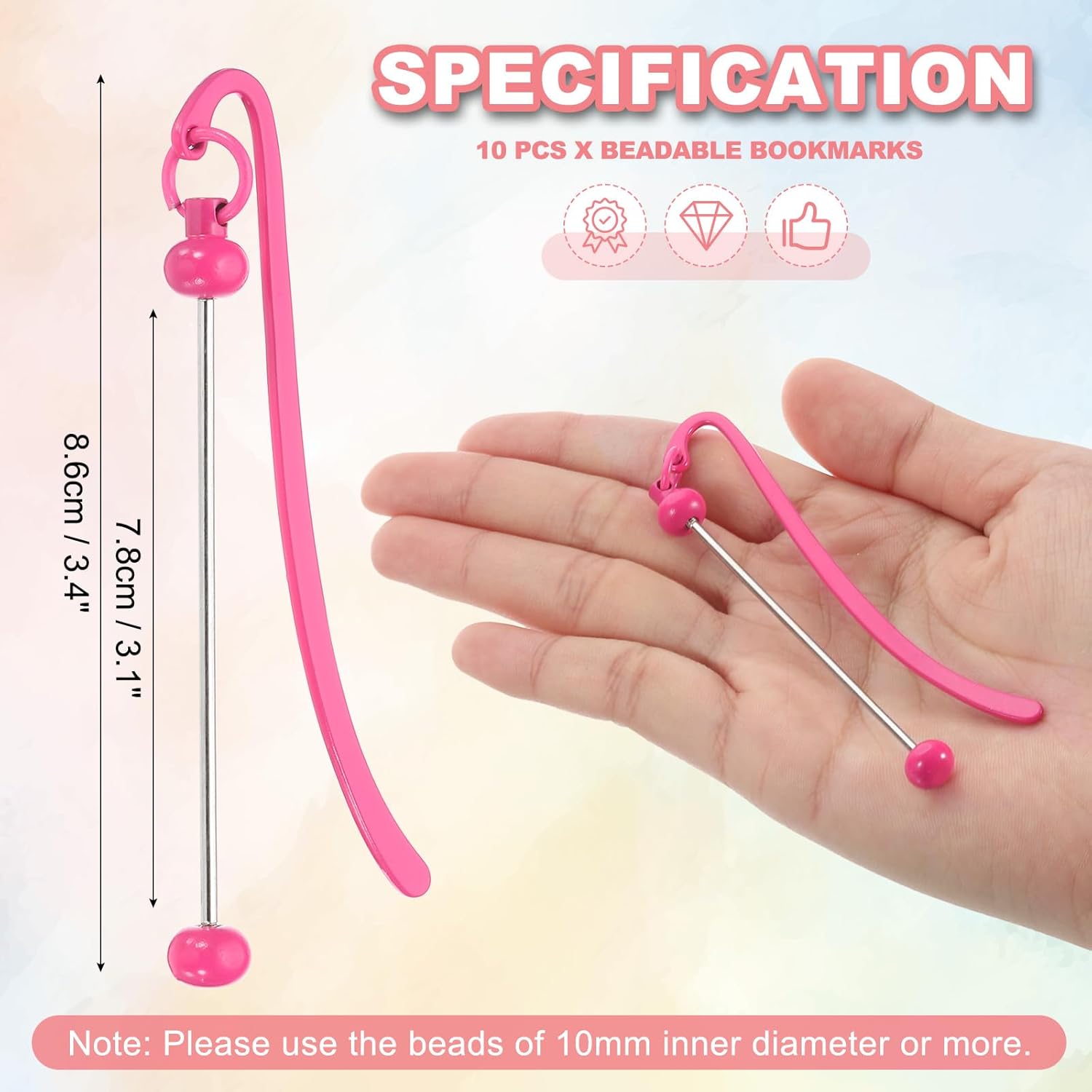 - Specification: Material: Metal; Color: Rose Red; Overall Length: 8.6cm/ 3.4 inch; Beadable Bar Length: 7.8cm/ 3.1 inch; Applicable Inner Diameter of Beads: 10 mm or More; Package List: 10 Pcs x Beadable Bookmarks