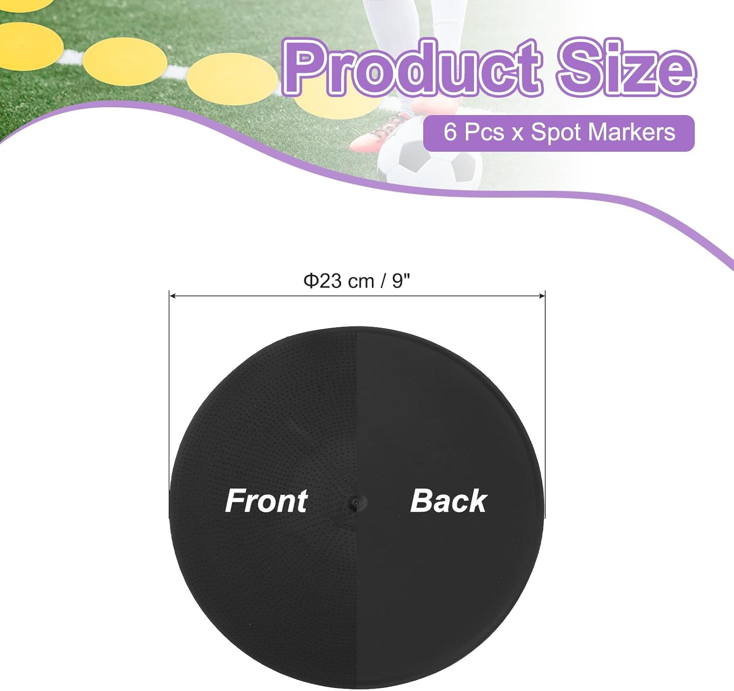 - Color: Black; Spot Markers Diameter: 23 cm / 9 inch; Packing List: 6 Pcs x Spot Markers