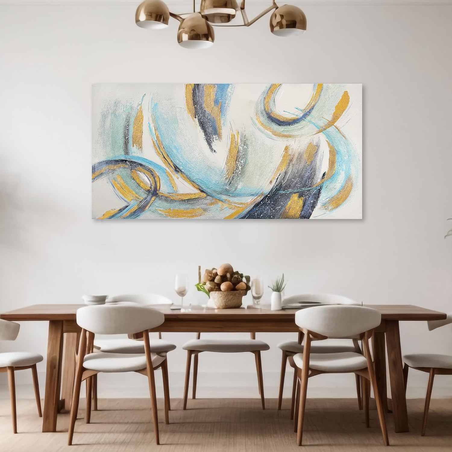 Glvzygy Abstract Wall Art Blue and Gold Wall Art Abstract Canvas Wall Decor Frame Artwork Modern Home Wall Decor for Living Room Bedroom Office 20"x40"