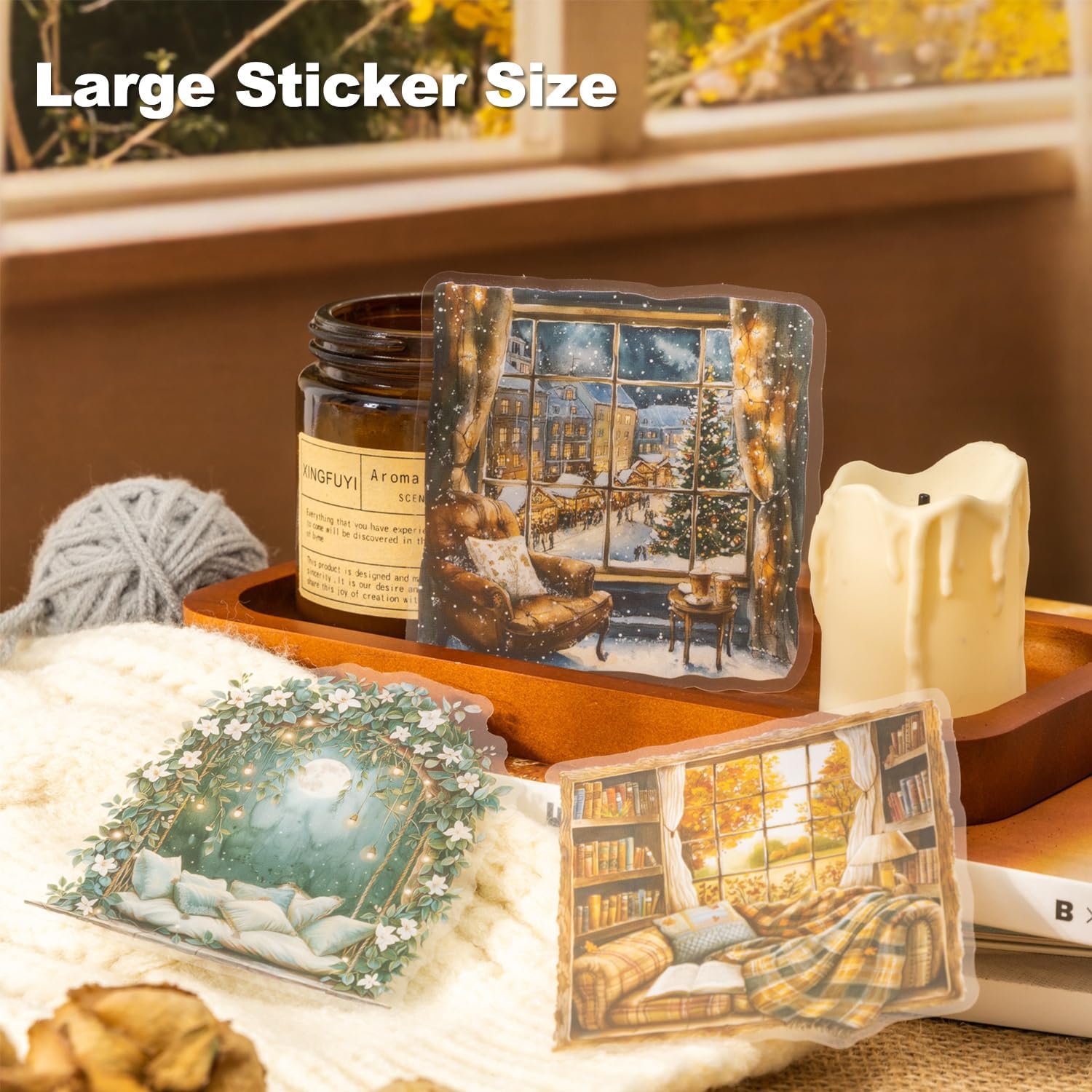 Window Scenery PET Sticker Set, 60Pcs Large Landscape Stickers for Scrapbooking, Journaling, Junk Journal Supplies, and DIY Crafts