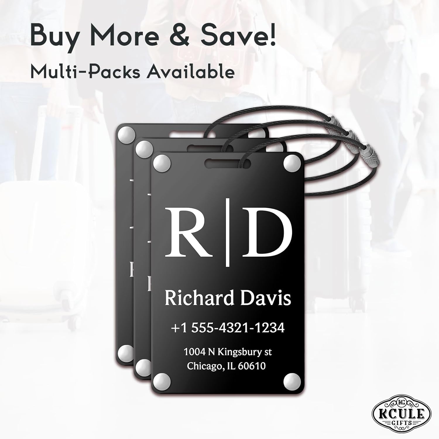 Personalized Luggage Tags for Suitcases - Monogram Style Aluminum Custom Luggage Tags for Backpacks & Bags, Sturdy, Waterproof & Heavy Duty (Black/Card-Sized)