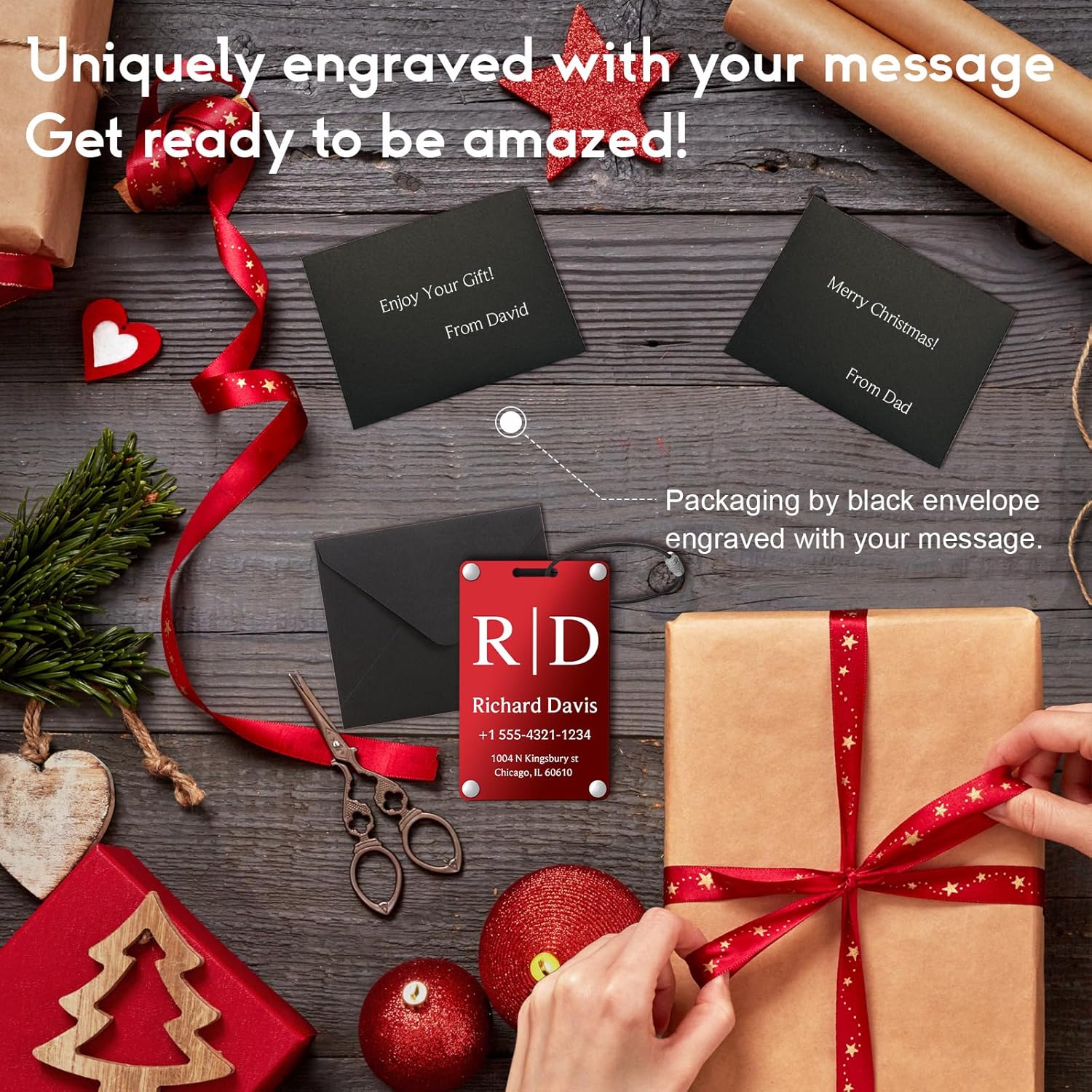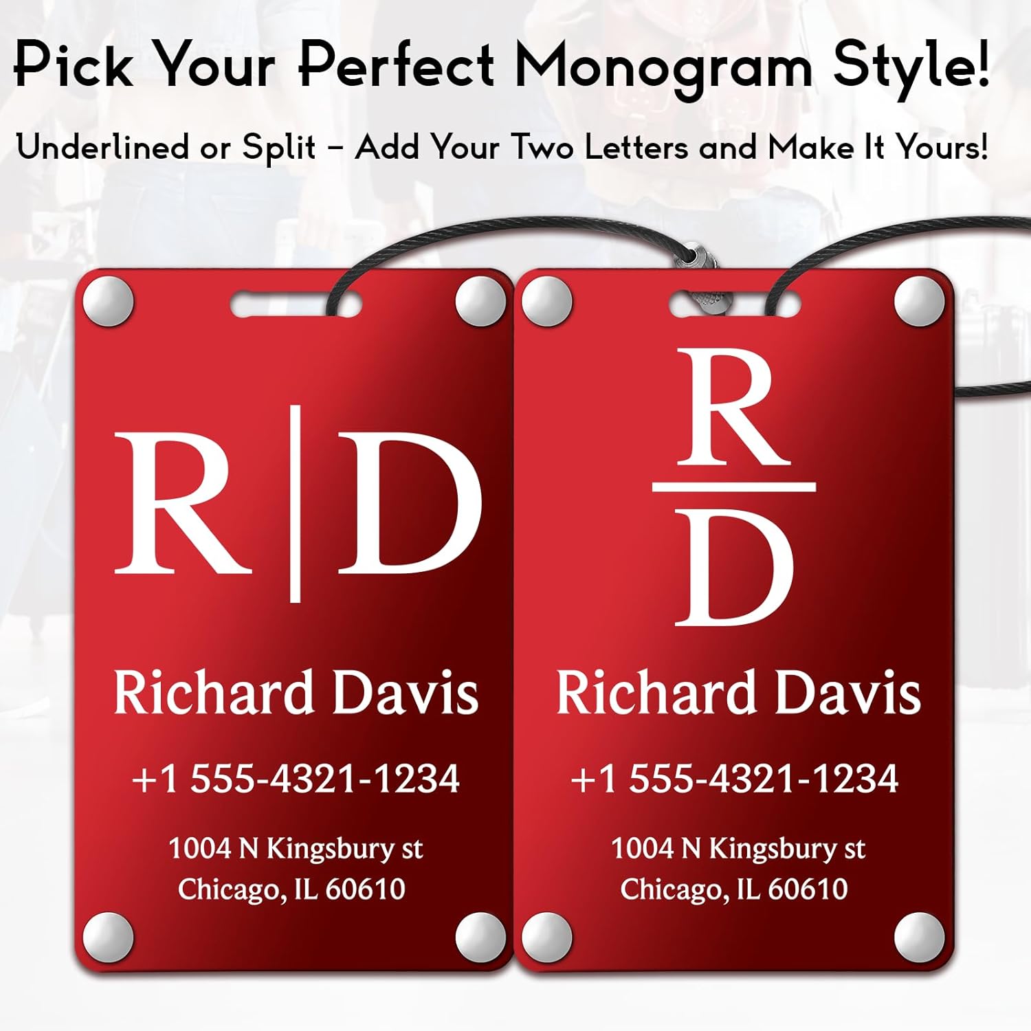 Personalized Luggage Tags for Suitcases - Monogram Style Aluminum Custom Luggage Tags for Backpacks & Bags, Sturdy, Waterproof & Heavy Duty (Red/Card-Sized)
