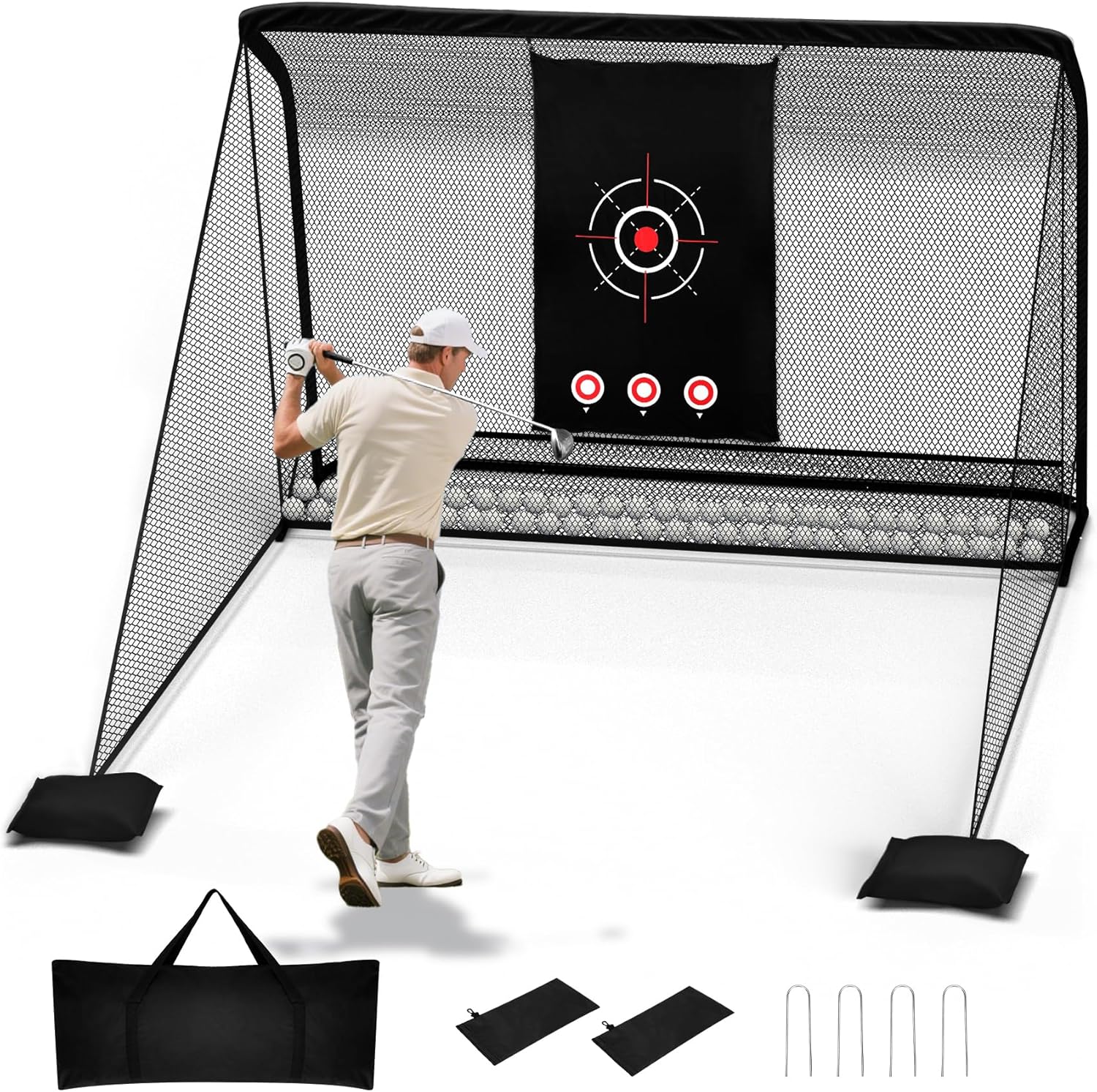 - ššššššššš ššššš-ššššš šššššššš ššš & šššš ššš š š šš ššš: Includes sandbags (sand not included) for stability, doubles as a ball barrier for easy practice, and adapts to backyard, garage, or indoor setups. Perfect for golf drills, chipping, or driving, plus baseball, softball, and lacrosse!