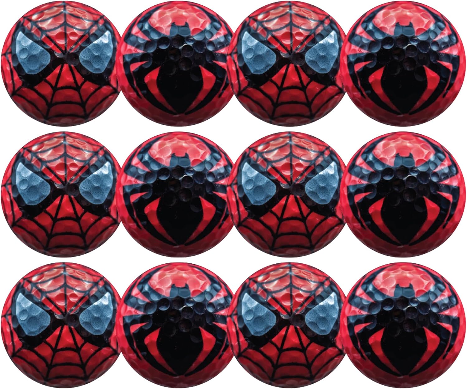 - UNIQUE SPIDER FACE DESIGN – 12 red unbranded golf balls with a bold black spider face imprint. Stand out on the golf course or display them as a fun collectible.