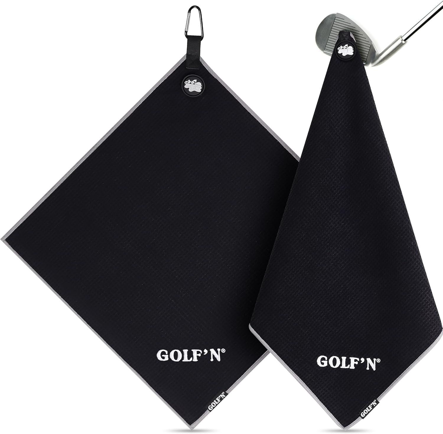 Golf'N Microfiber Towel - Magnetic Golf Towel Black 18" x 18" Golf Towels for Golf Bags with N52 Heavy Duty Magnets, Carabiner Clip & Cross Stitched Reinforced Loop, Premium Golf Accessories