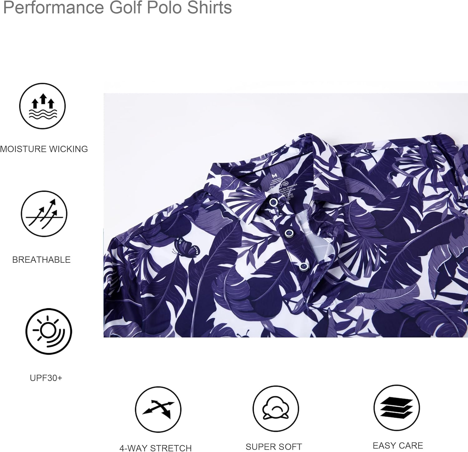 - Vibrant Hawaiian Design: Stand out on the golf course with these eye-catching printed golf shirts featuring bold Hawaiian patterns. Whether you're playing a round or attending a casual event, these shirts bring a touch of tropical flair and fun to your wardrobe