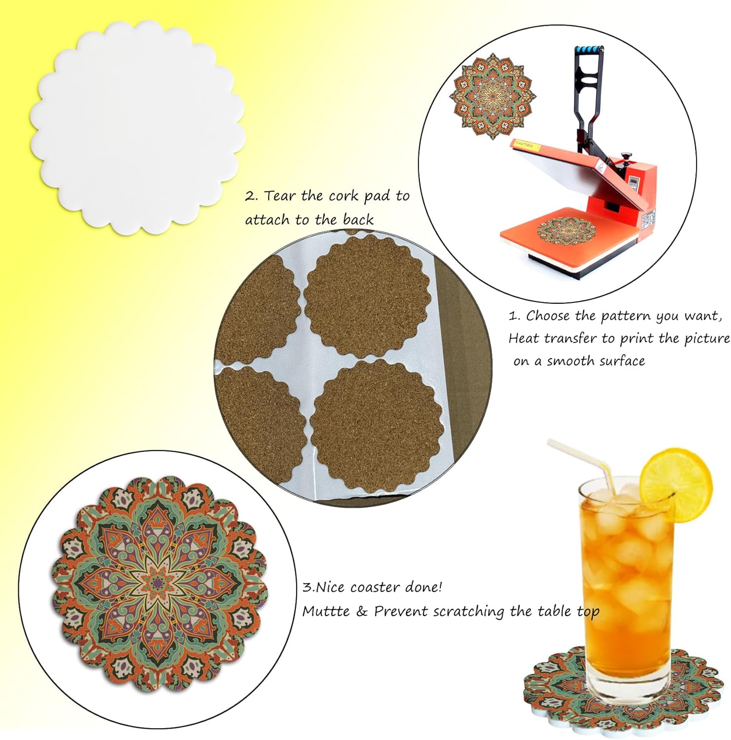 - DIY Coaster:Not just car coasters,it also good for kitchen, office, bar, restaurant, home and other occasions, easy to mix and match with any type of decor and home decoration.Choose your favorite or meaningful pattern to heat transfer to the coasters for decoration.Kindly noted heated about 400 degrees Fahrenheit (200 degrees Celsius) for 200 seconds