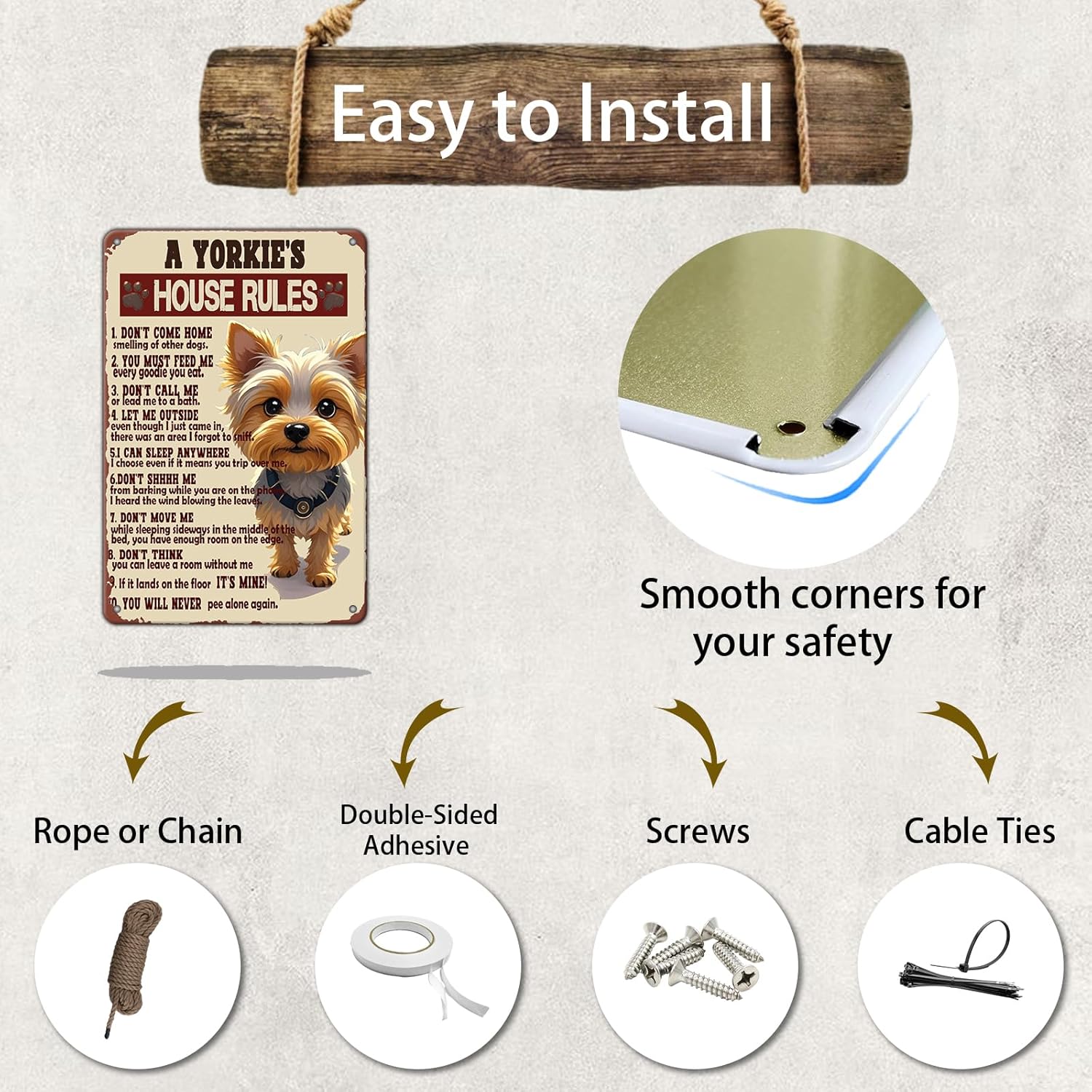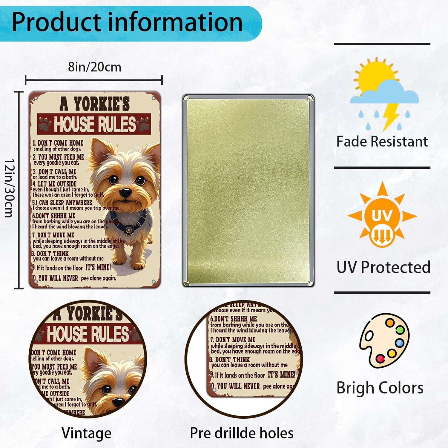 Yorkie House Rules Funny Metal Tin Sign Vintage 'I Am Your Friend' Poster 12x8 Inch Yorkie Dog Iron Tin Sign Home Kitchen Garden Restaurant Man Cave Wall Decor