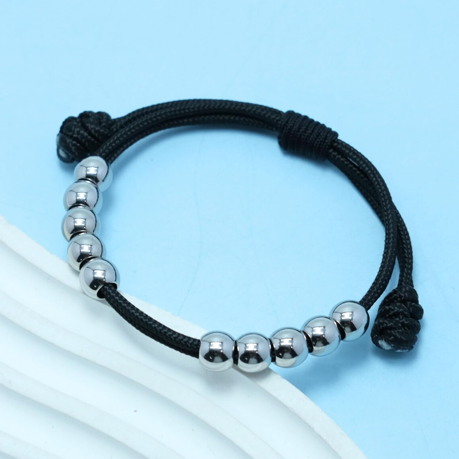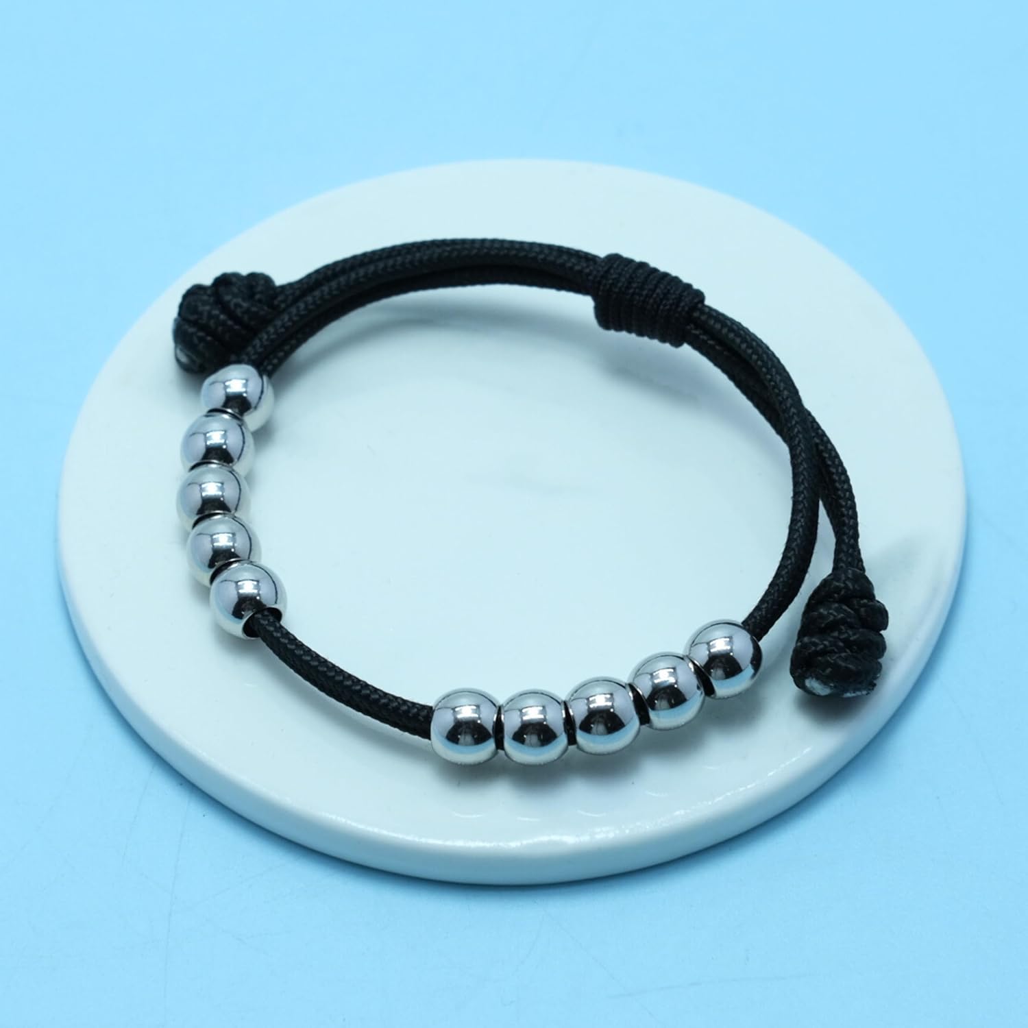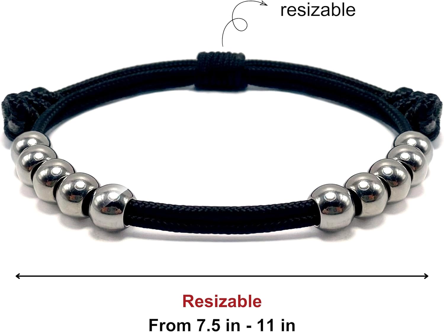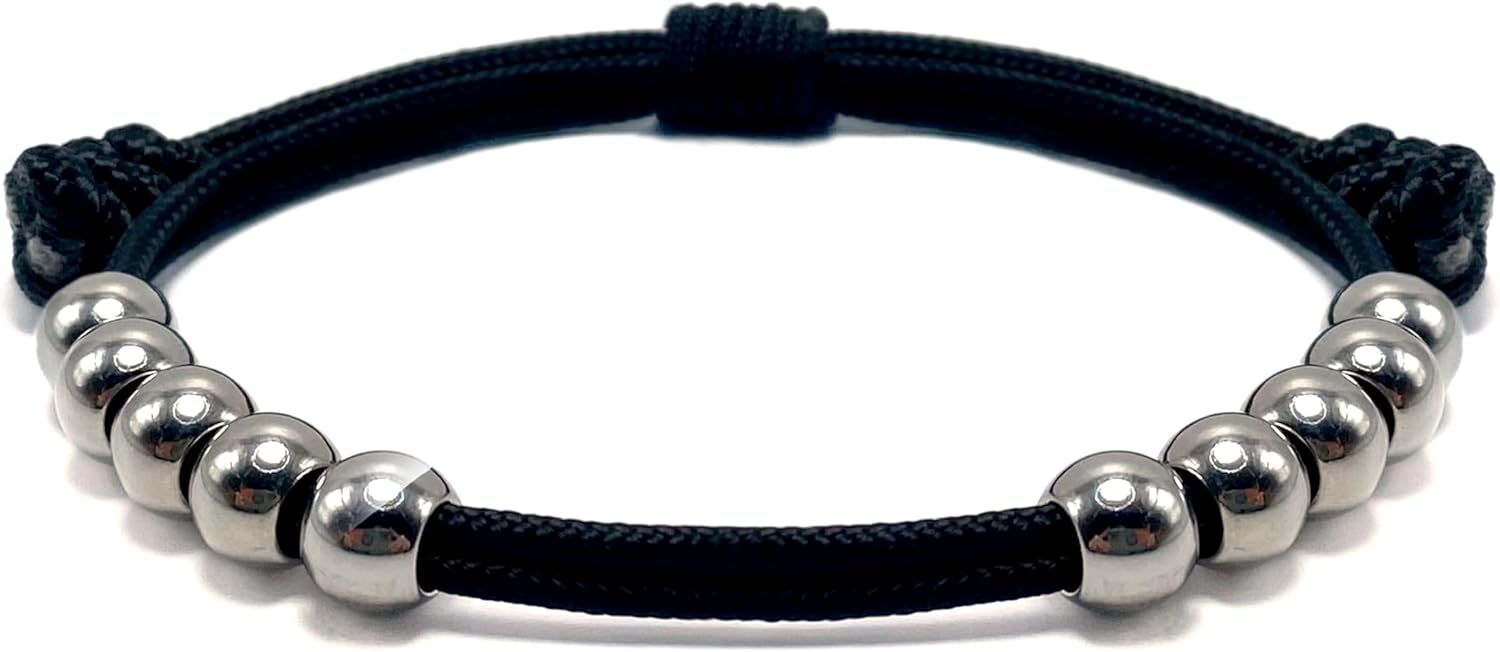 LAMIBEE Golf Stainless Steel 10 Beads Score Counter Bracelet, 2mm Paracord Durable Thread Resizable Easy to Adjust Round Scoring Tracker, Golf Accessory (8mm Black)