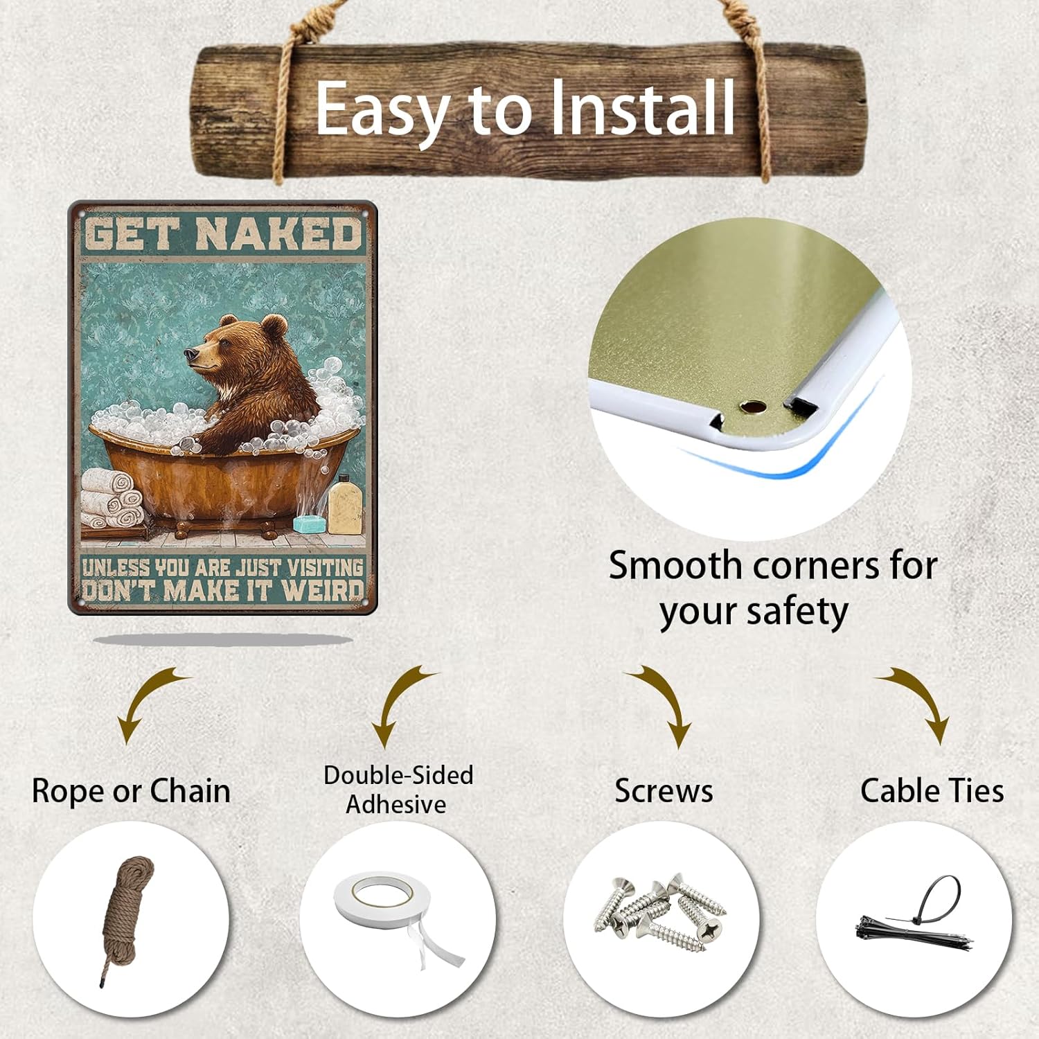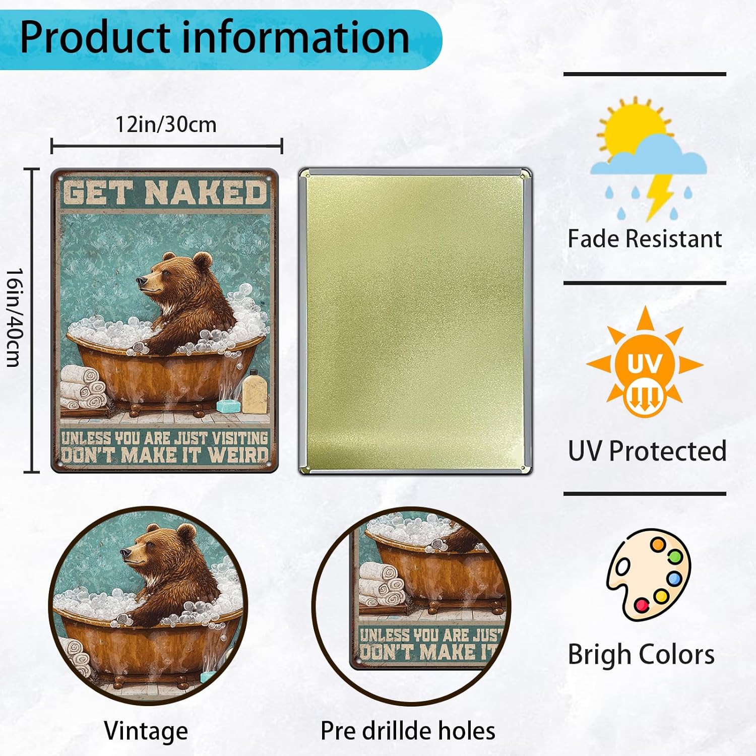 - 1.♦ [Size:] Funny Vintage Metal Tin Sign Size:12 (W) X 16 (H) Inchs, (30x40 CM) Suitable For Various Wall Decoration Needs Of Indoor And Outdoor Bathroom Farmhouse Decor.