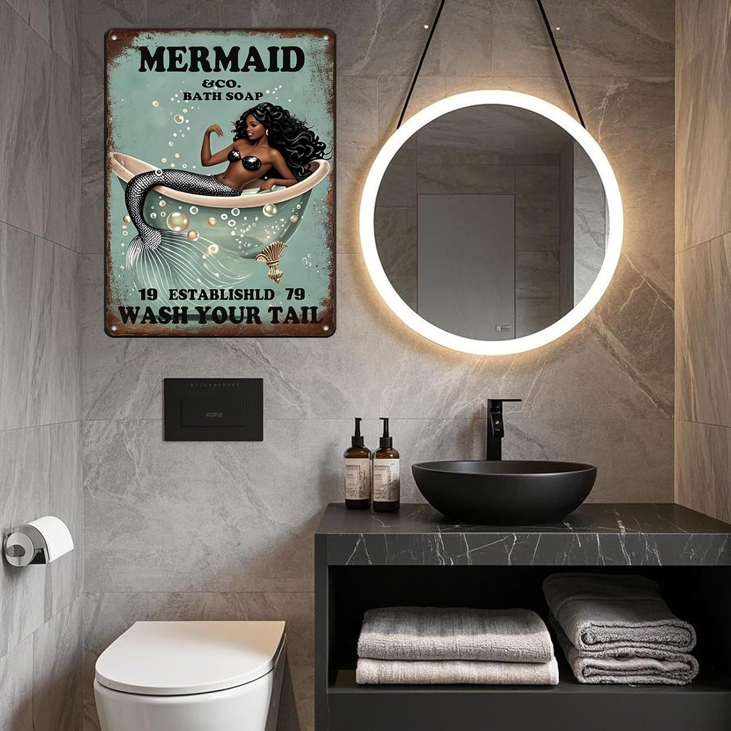 Funny Mermaid Company Bath Soap Metal Signs Wash Your Tail Sign Vintage Tin Sign Wall Decor Retro Tin Signs for Room Living Room Bathroom Toilet Hotel 12x16 Inch