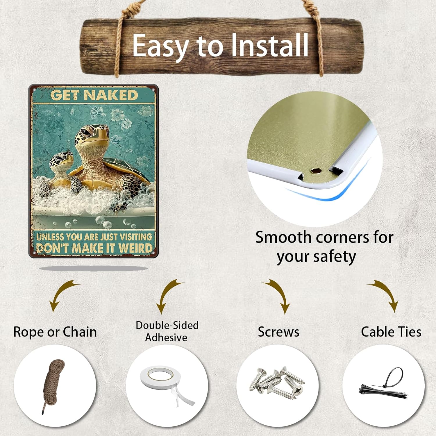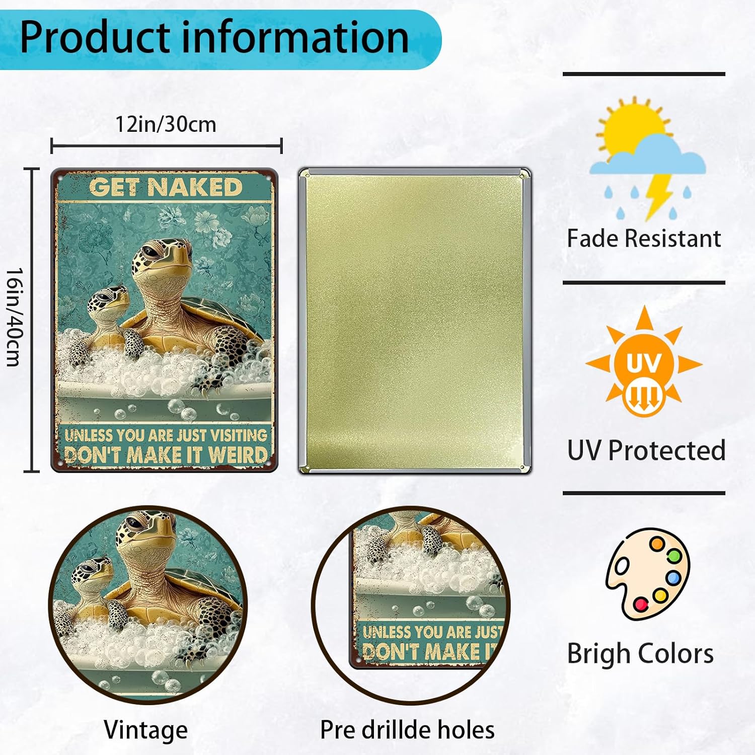 - 1.♦ [Size:] Funny Vintage Metal Tin Sign Size:12 (W) X 16 (H) Inchs, (30x40 CM) Suitable For Various Wall Decoration Needs Of Indoor And Outdoor Bathroom Farmhouse Decor.
