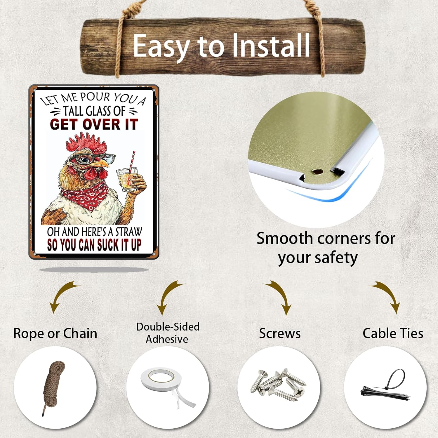 - 3.♦[Design: ]Funny The Surface Presents A Retro Classical Effect, Adding Fun To Your Kitchen, Dining Room, Indoor And Outdoor Home Decoration. It Adds A Sense Of Happiness To People. Four Drill Holes Have Been Reserved For Your Decoration, Which Can Be Hung With Ropes Or Installed On Walls Decor.
